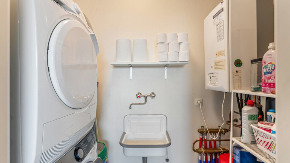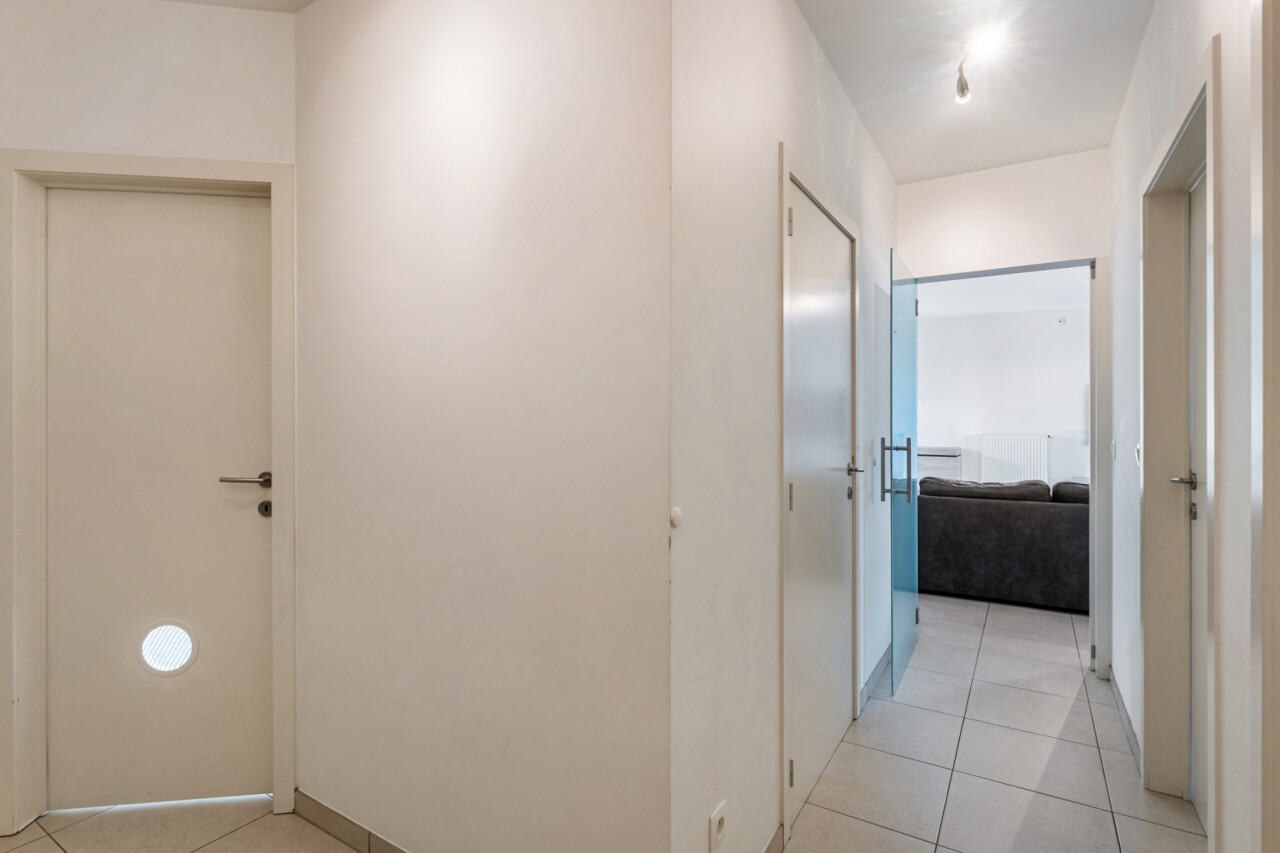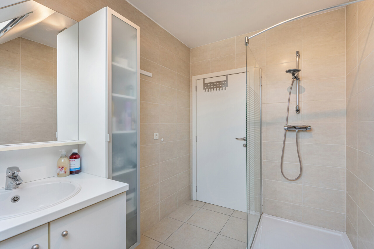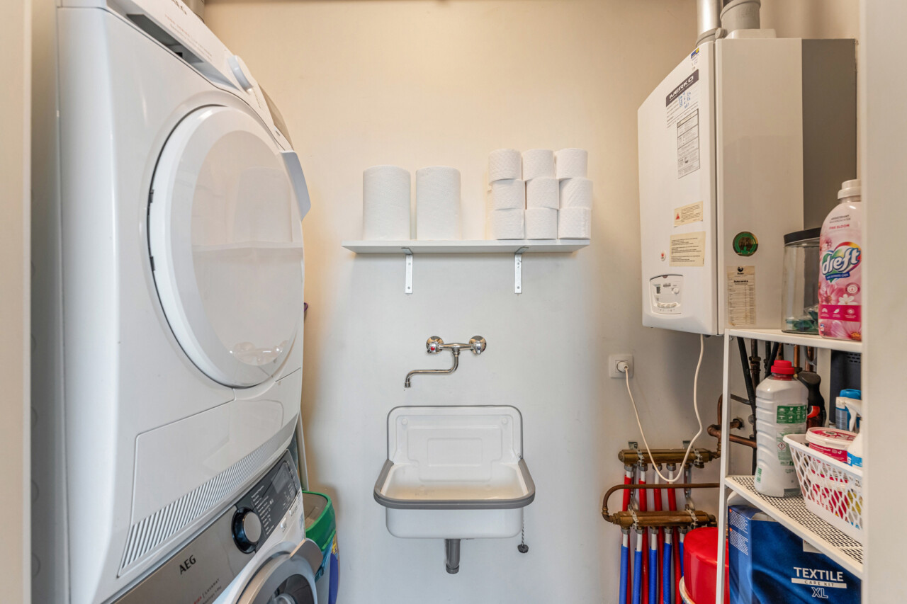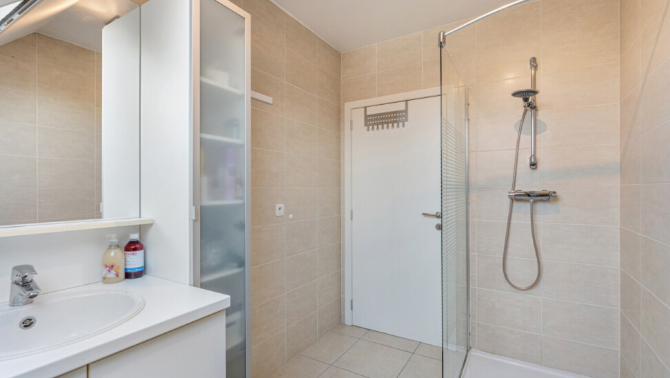 Het appartement beschikt over een 1-persoonskamer, een 2-persoonskamer met ingebouwde kasten en een badkamer met inloopdouche en lavabomeubel. Verder is er nog een berging met voorzieningen voor wasmachine en droogkast.
