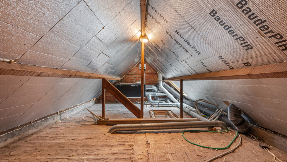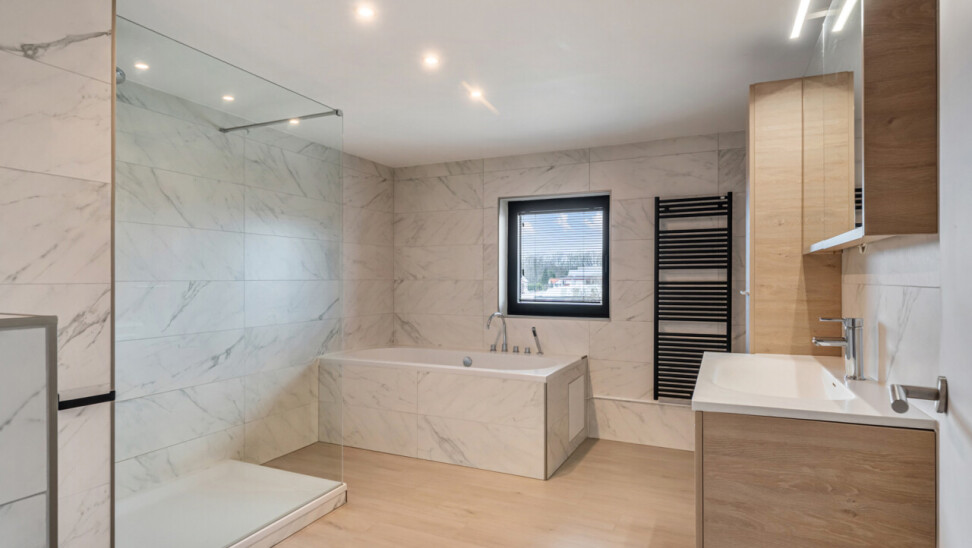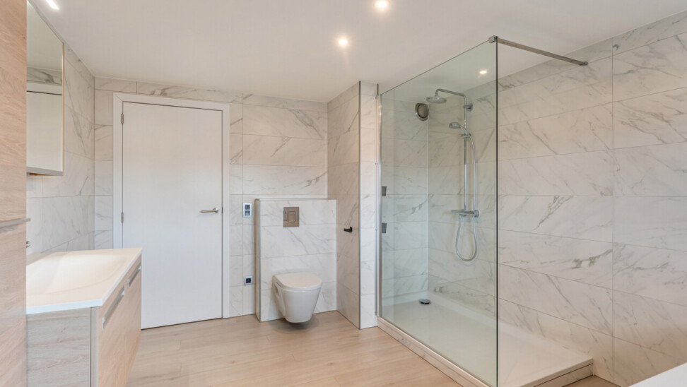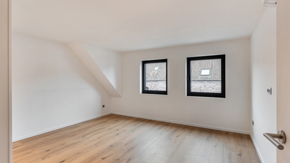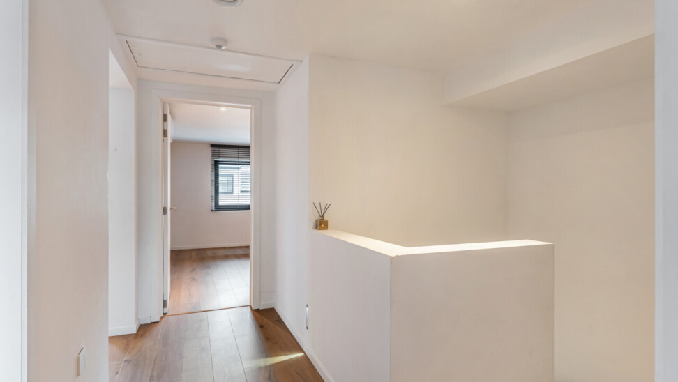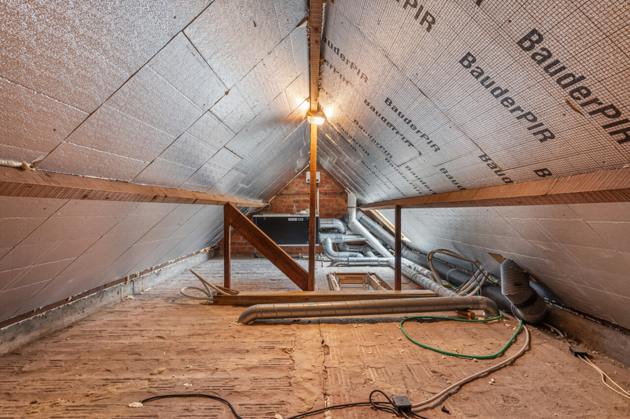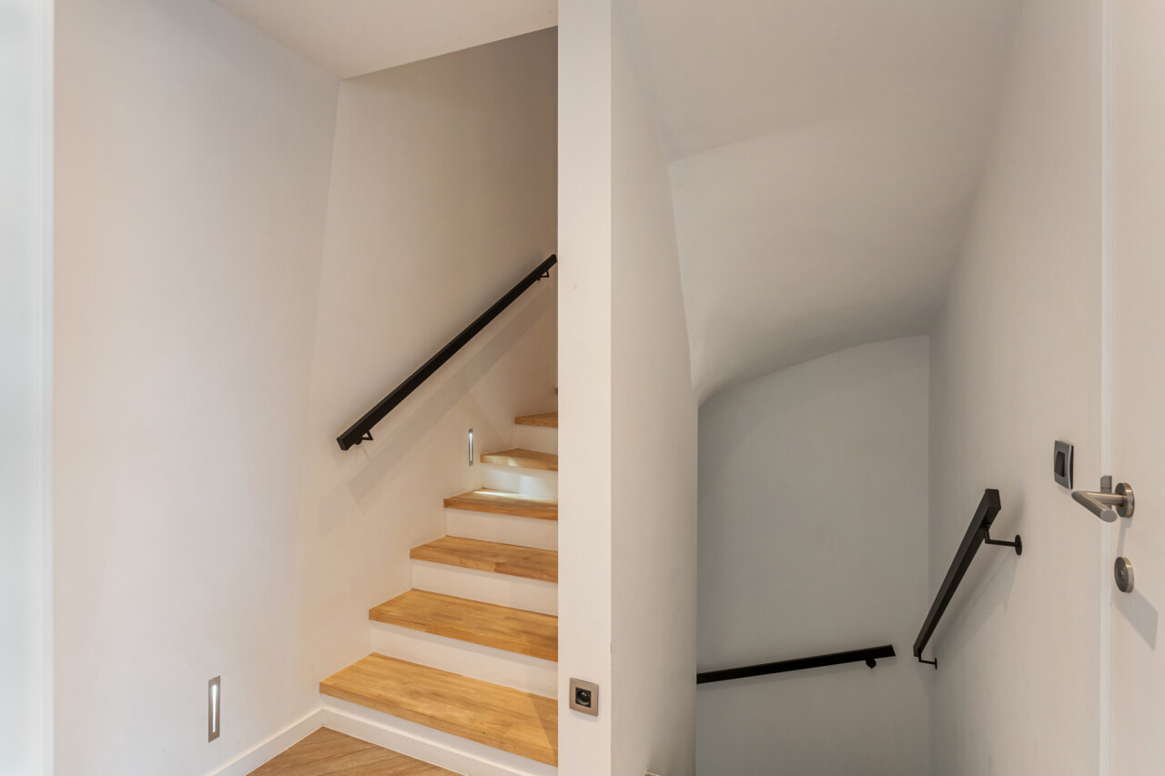 Op de tweede verdieping vinden we drie slaapkamers, waarvan elk met eigen dressing. De moderne badkamer beschikt over een grote inloopdouche, ligbad, toilet en lavabo. Daarnaast is er nog een zolder aanwezig.