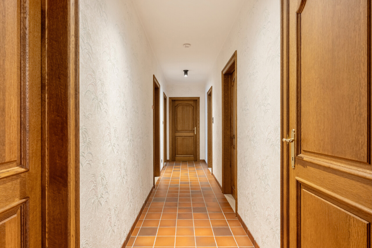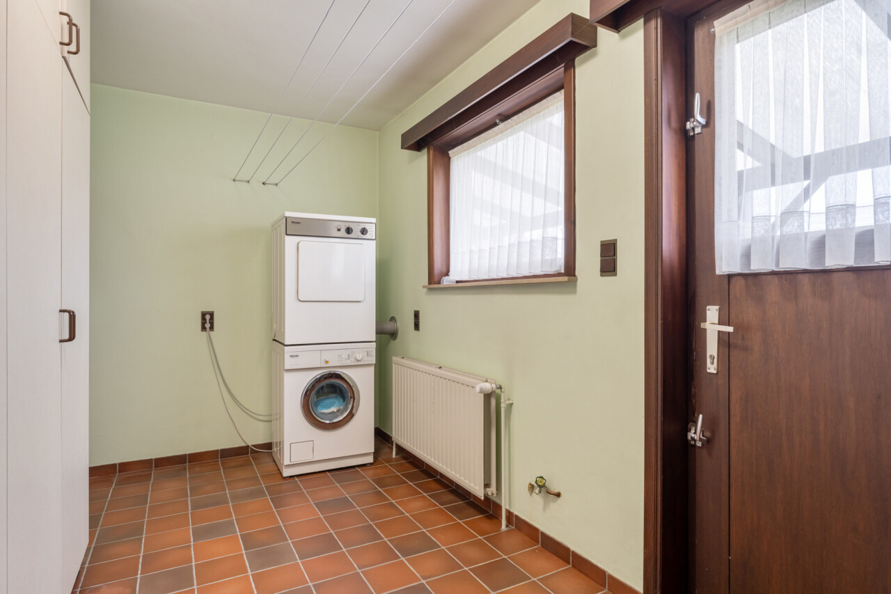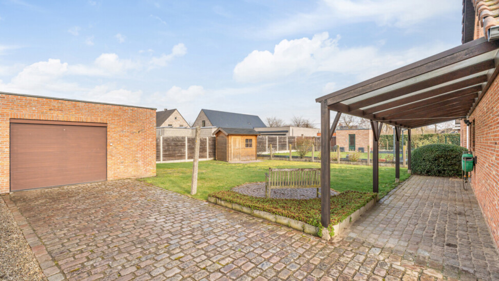 De zolderverdieping biedt mogelijkheden tot uitbreiding en de kelder zorgt voor extra bergruimte. In de tuin bevindt zich bovendien een garage met automatische poort, alsook een tuinhuis.
