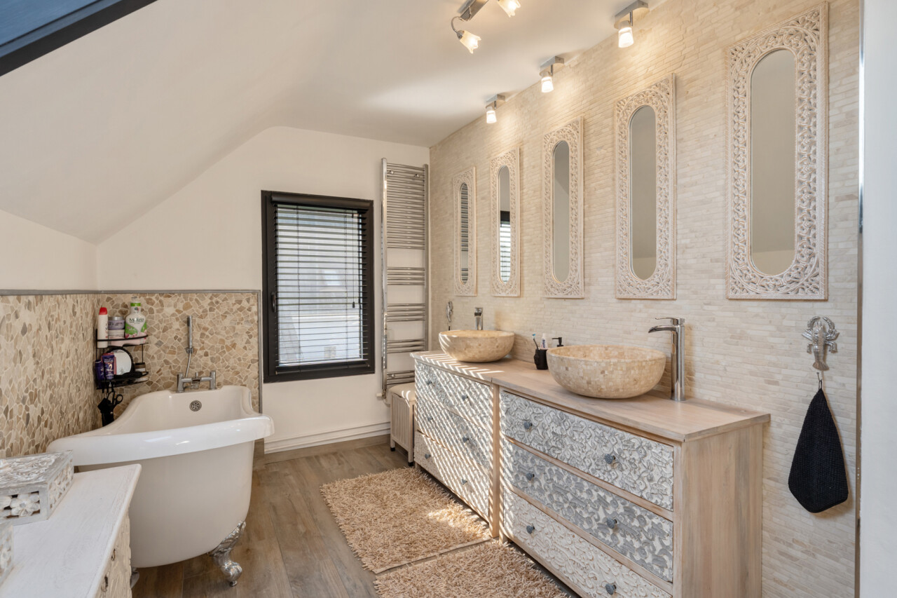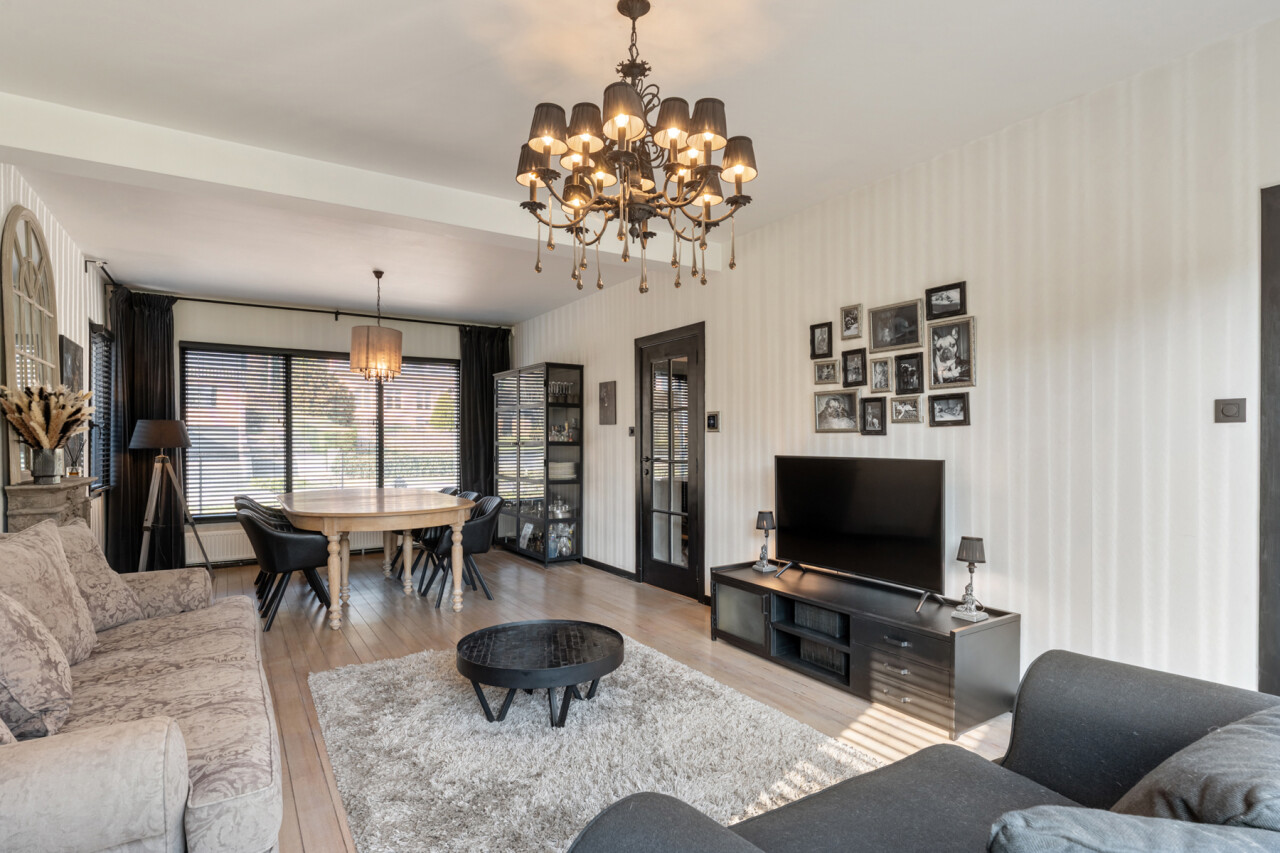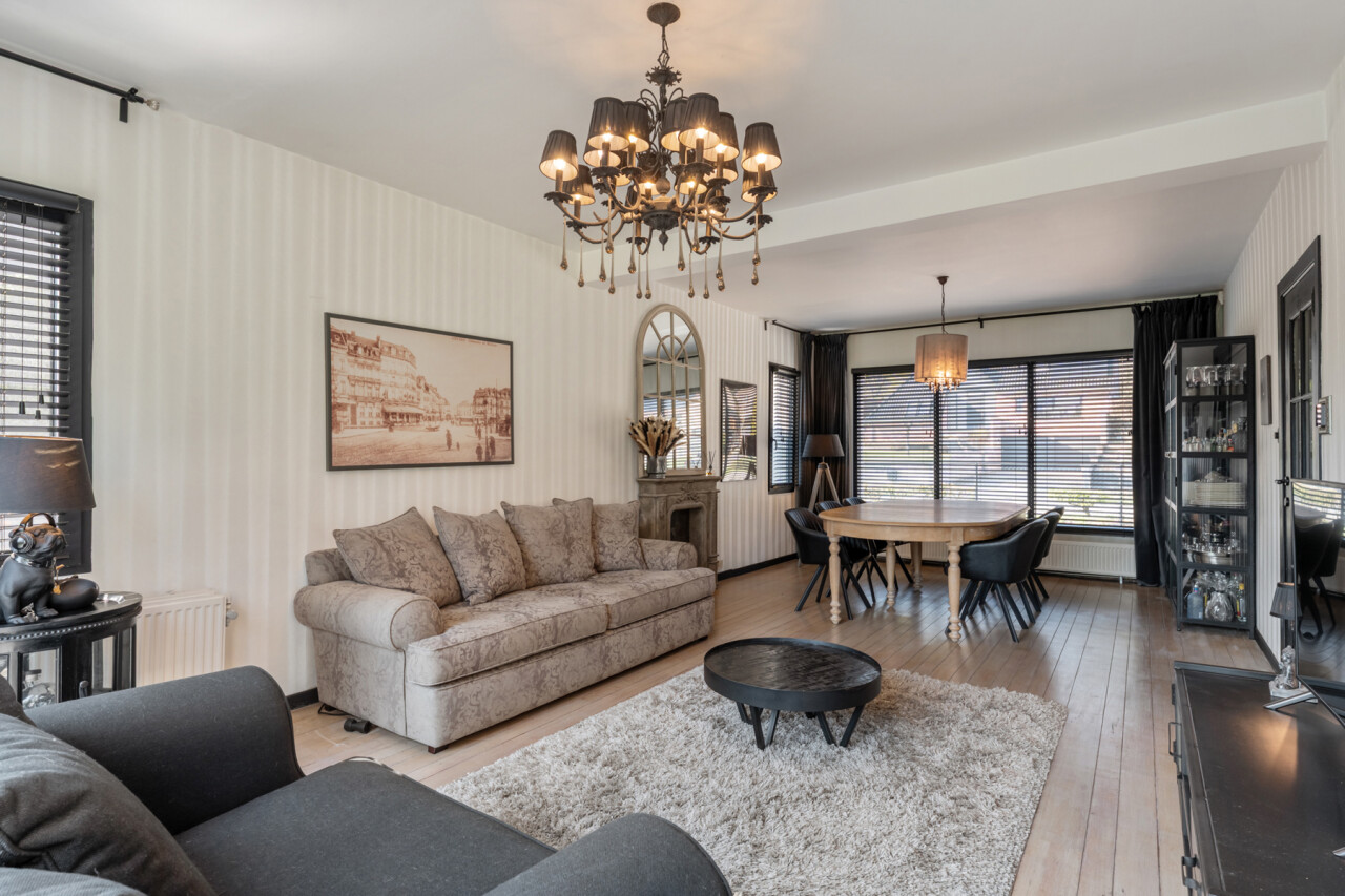 De woning werd gebouwd in 1959, doorheen de jaren goed onderhouden en recent geleden vernieuwd. Via de inkomhal betreden we de aangename woonkamer (35 m²), deze geniet van bijzonder veel natuurlijke lichtinval en biedt een aangenaam zicht op de tuin. Aansluitend is er de geïnstalleerde keuken. Ook de keuken geeft uit op de naar het zuiden georiënteerde tuin! Verder is er een ruime bijkeuken/wasplaats gelijkvloers en de eerste ruime slaapkamer (ca. 15 m²). De bovenverdieping omvat 2 ruime slaapkamers waarvan 1 dienst doet als dressing en de vernieuwde badkamer (ligbad, douche en een dubbel lavabomeubel).
