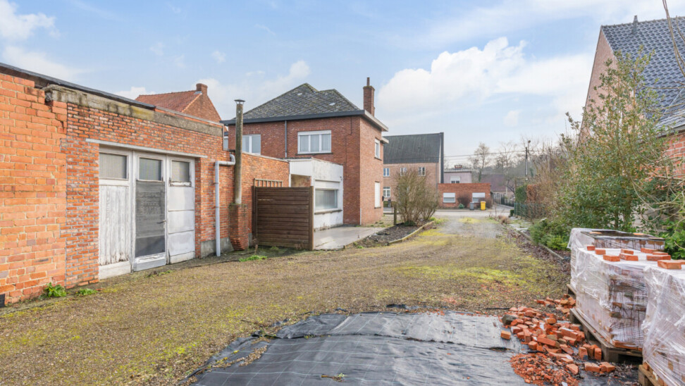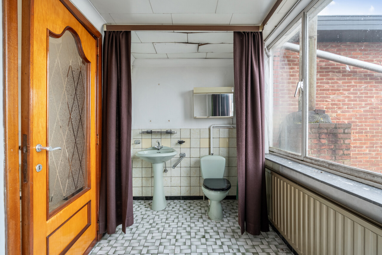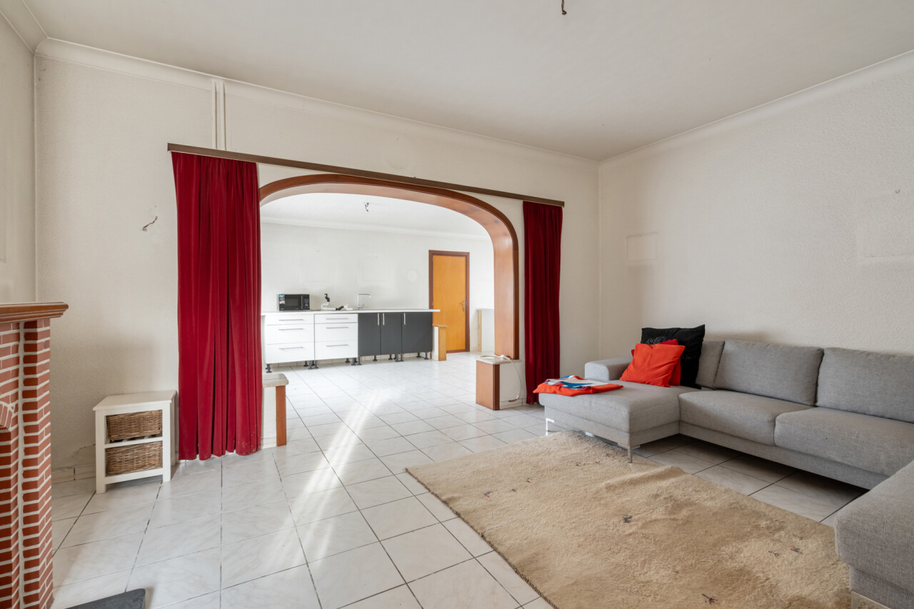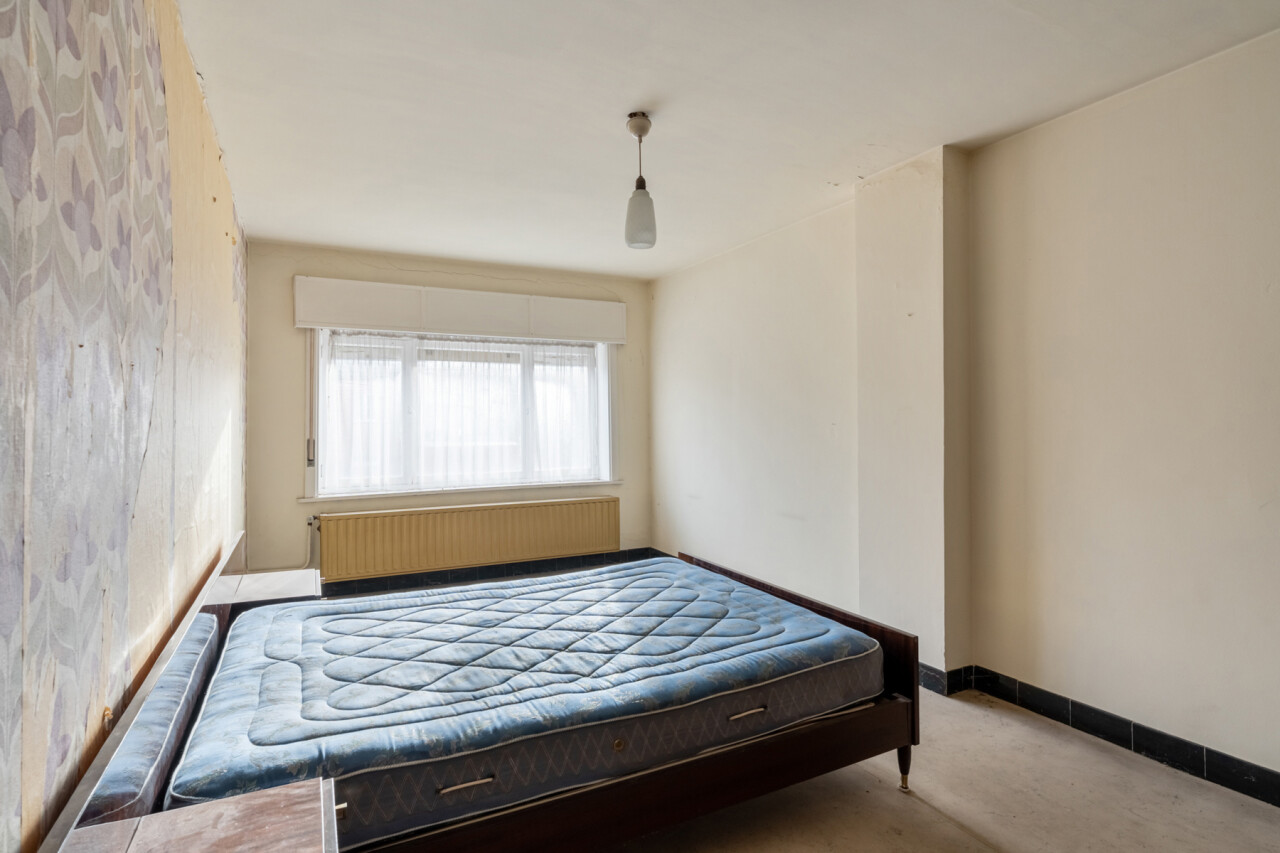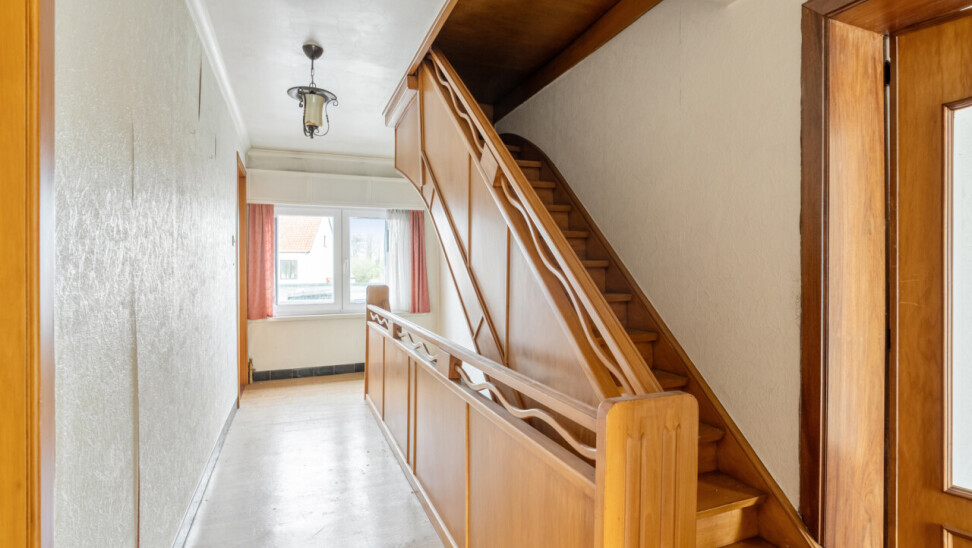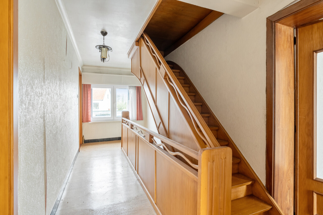 Deze woning is gebouwd in 1959 en is toe aan een grondige renovatie. De leefruimte geniet van hoge plafonds en veel lichtinval. Achter de keuken is er een badkamer of wasplaats voorzien. Op de eerste verdieping zijn er 4 slaapkamers. De zolder is bereikbaar via een vaste trap en kan afgewerkt worden tot extra slaapkamer of een hobbyruimte. Het perceel is bovendien toegankelijk langs twee straten.
