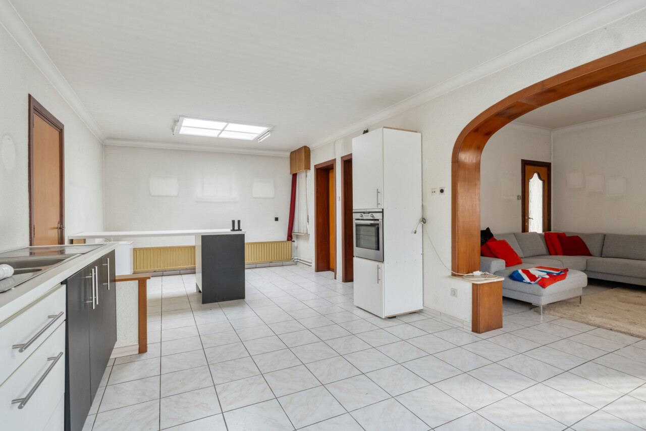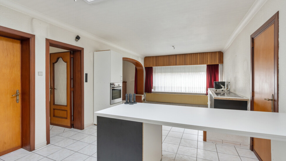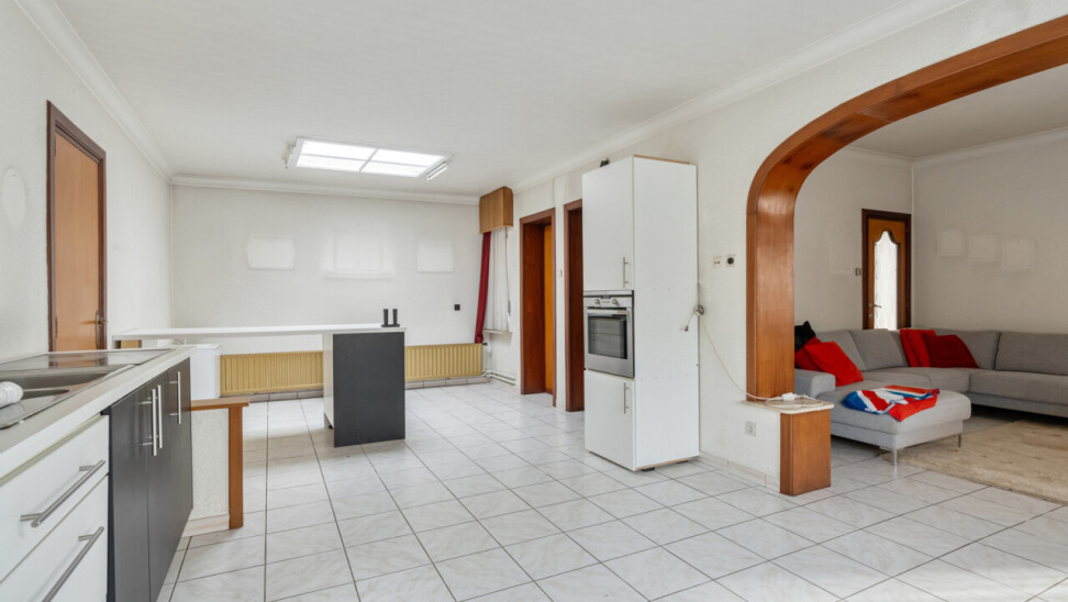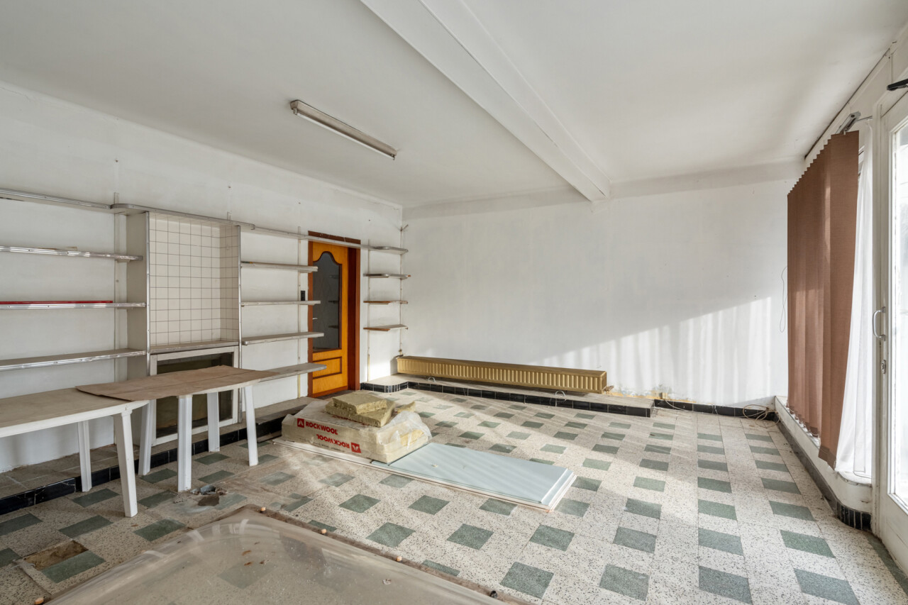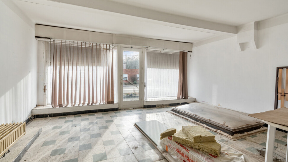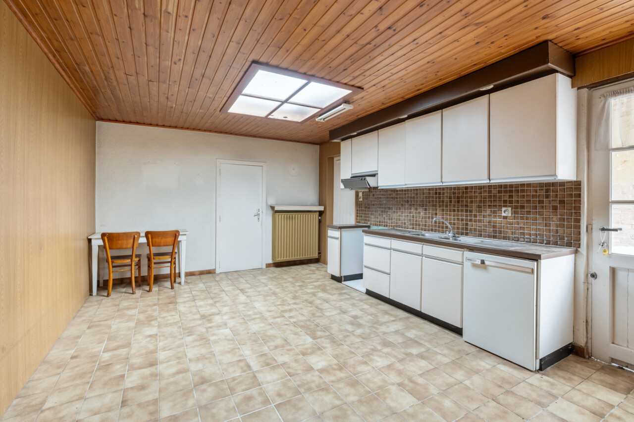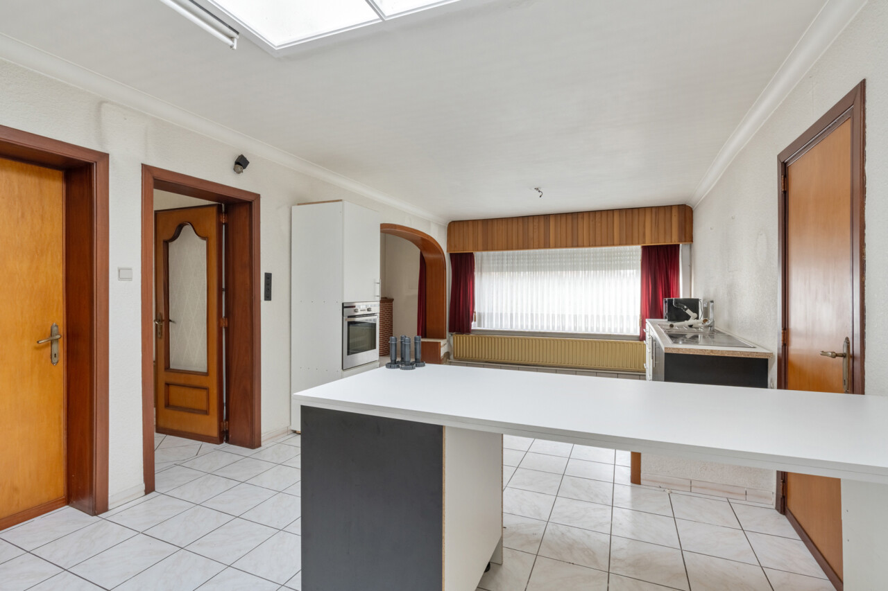 Deze woning is gebouwd in 1959 en is toe aan een grondige renovatie. De leefruimte geniet van hoge plafonds en veel lichtinval. Achter de keuken is er een badkamer of wasplaats voorzien. Op de eerste verdieping zijn er 4 slaapkamers. De zolder is bereikbaar via een vaste trap en kan afgewerkt worden tot extra slaapkamer of een hobbyruimte. Het perceel is bovendien toegankelijk langs twee straten.
