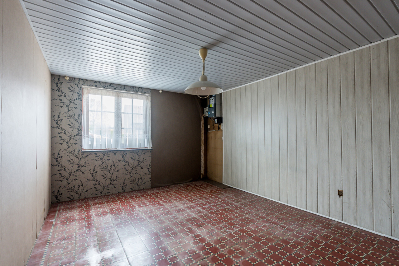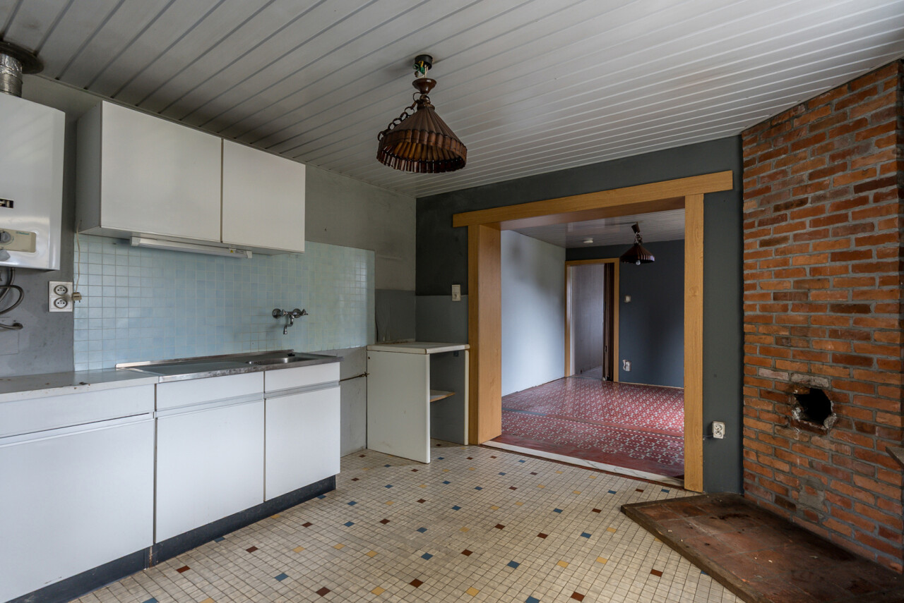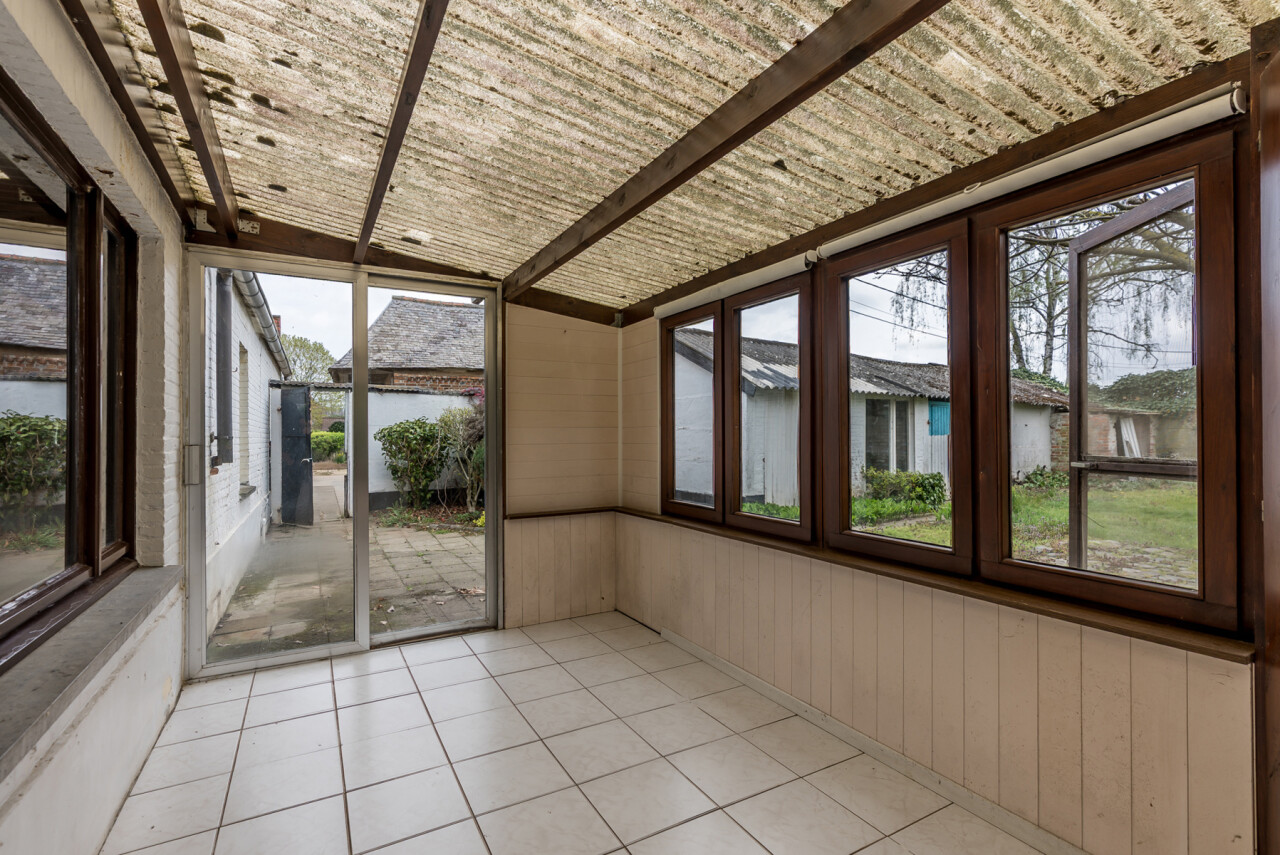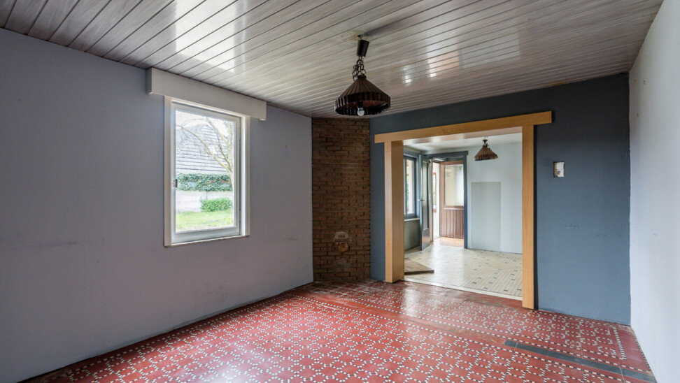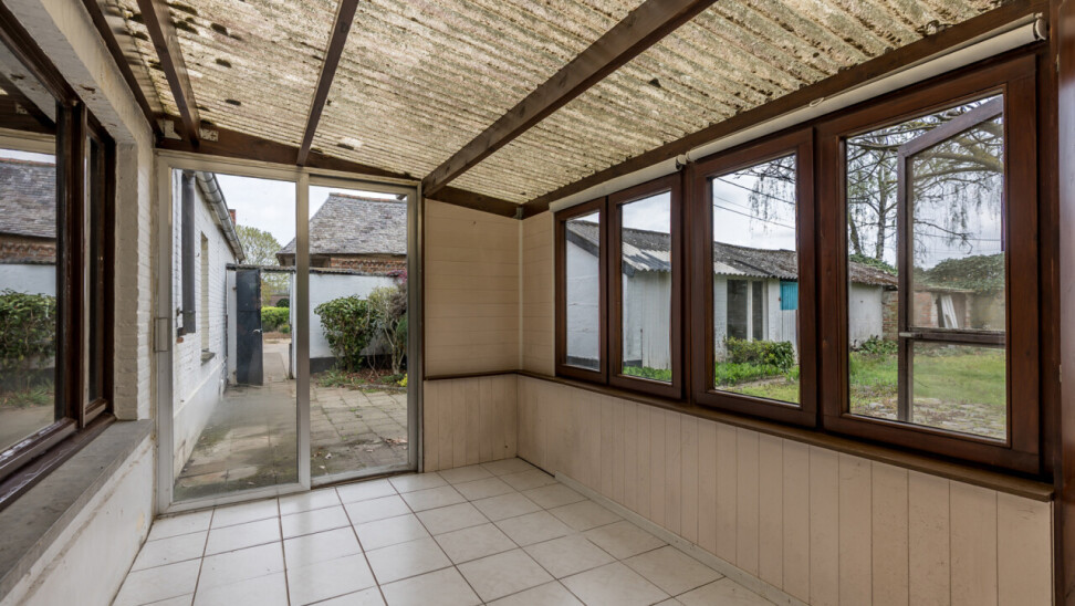De woning is te renoveren en bestaat uit een voorkamer/slaapkamer, leefruimte, keuken, veranda en badkamer met lavabo, toilet en douche. Verder is er vooraan nog een bijgebouw/opslagruimte aanwezig van ± 45m².