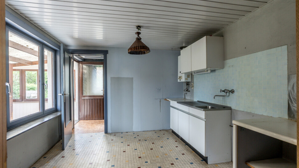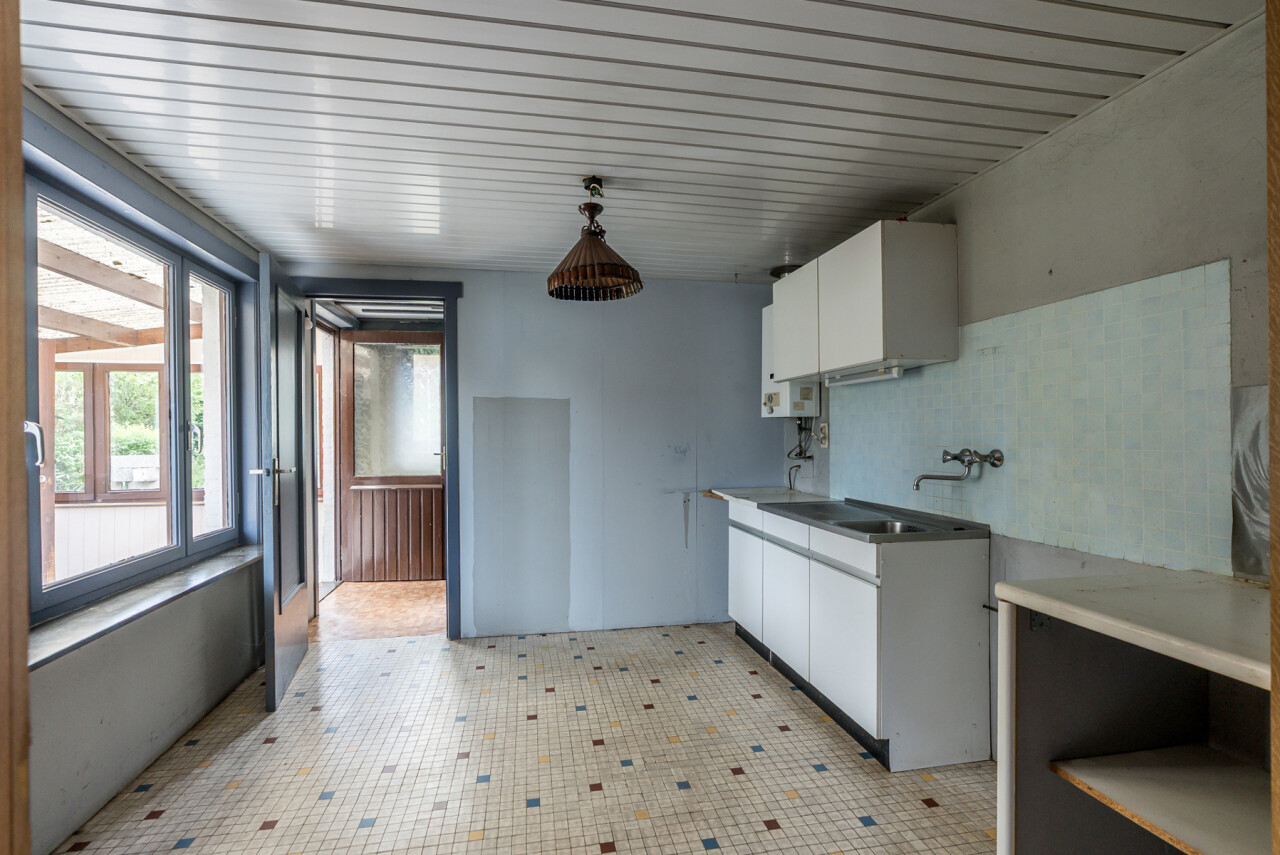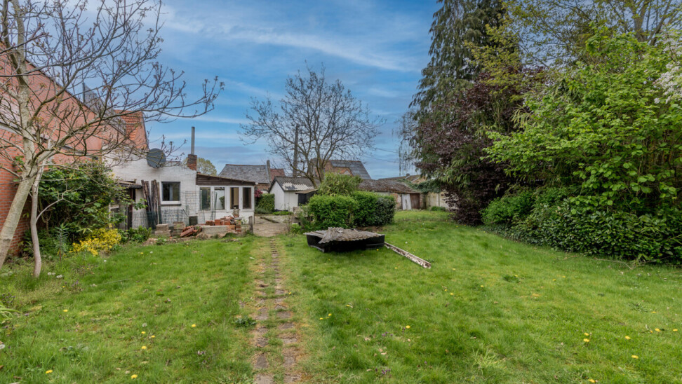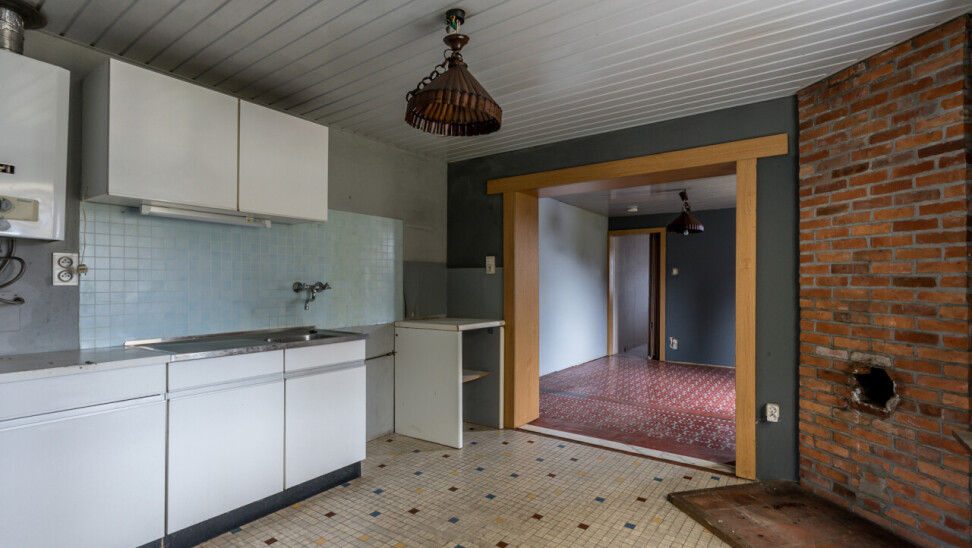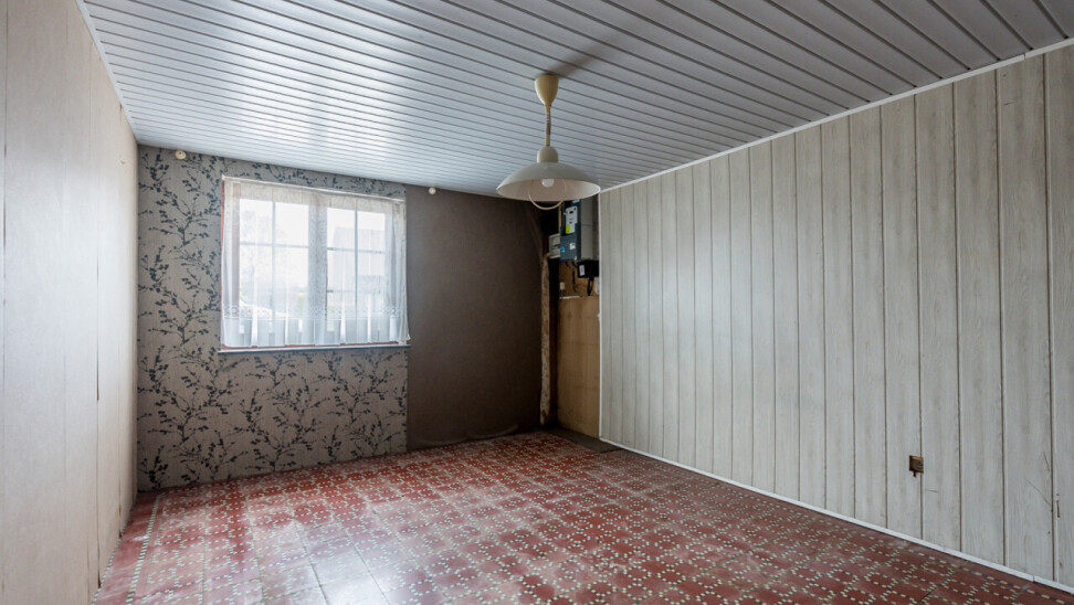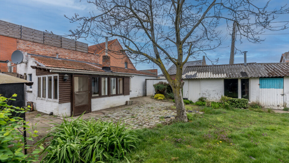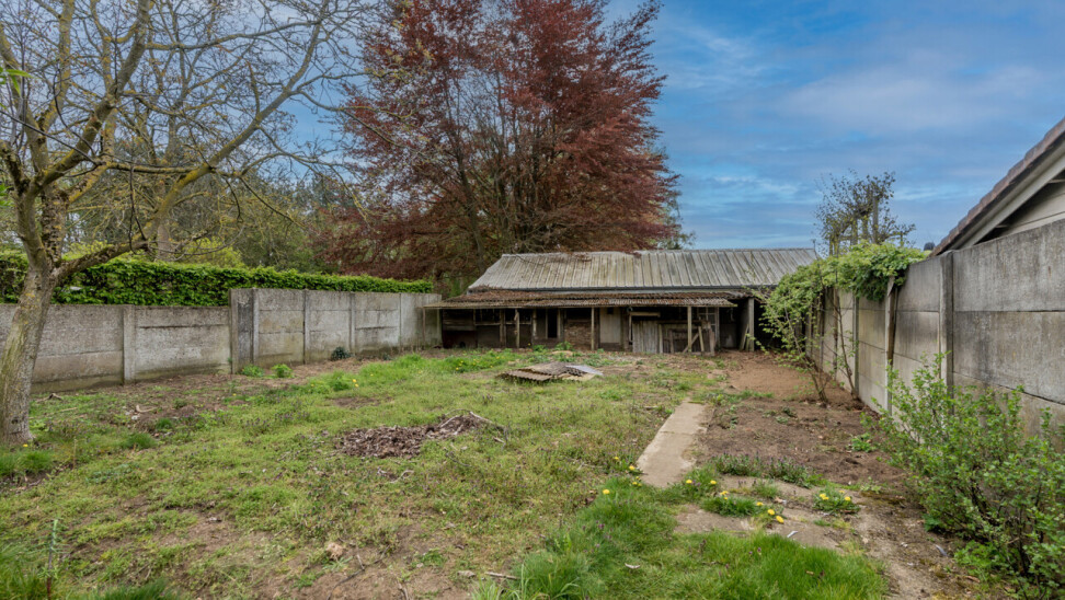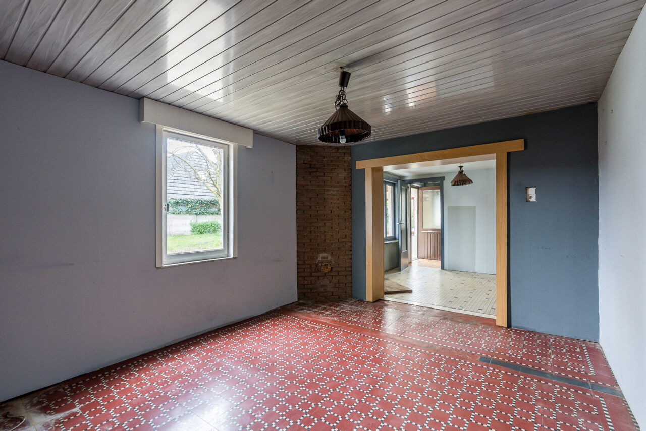 De woning is te renoveren en bestaat uit een voorkamer/slaapkamer, leefruimte, keuken, veranda en badkamer met lavabo, toilet en douche. Verder is er vooraan nog een bijgebouw/opslagruimte aanwezig van ± 45m².
