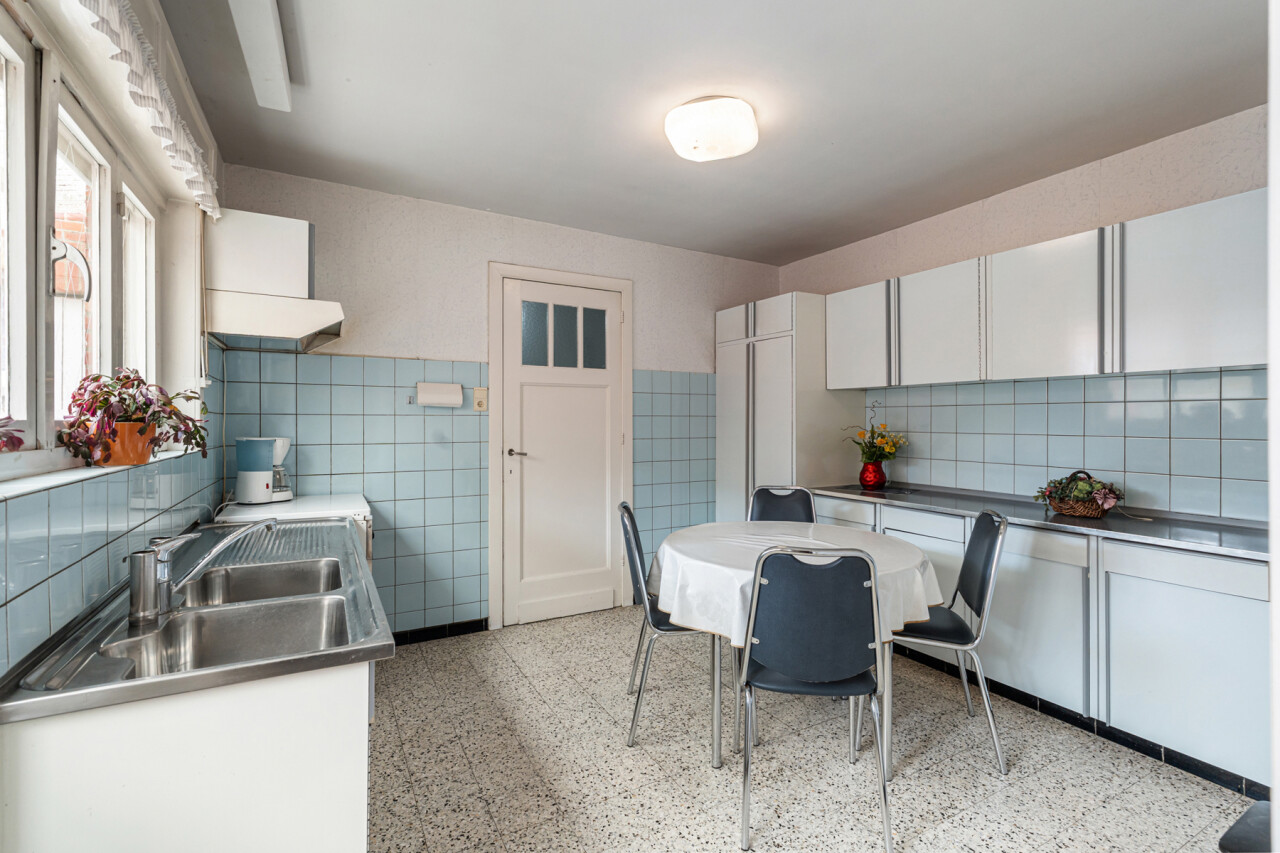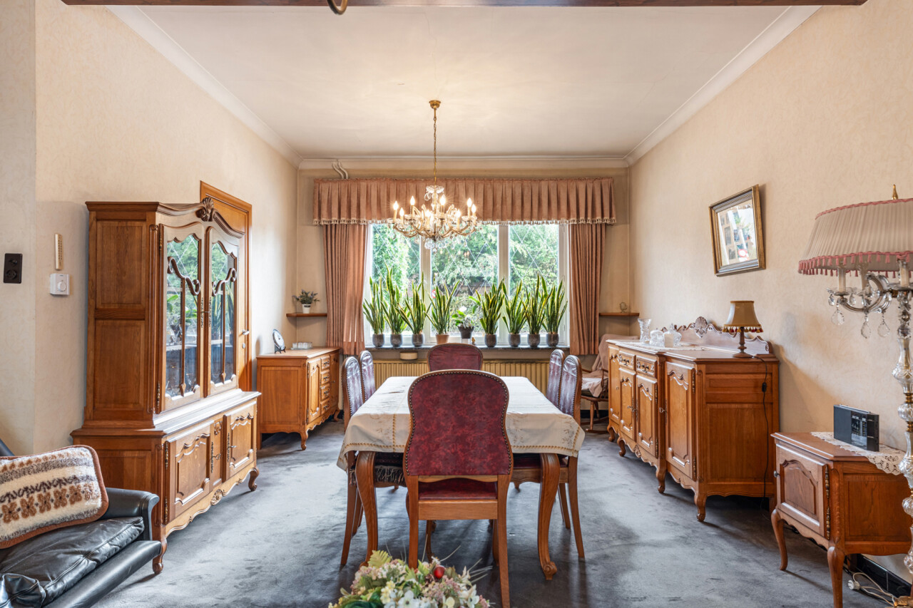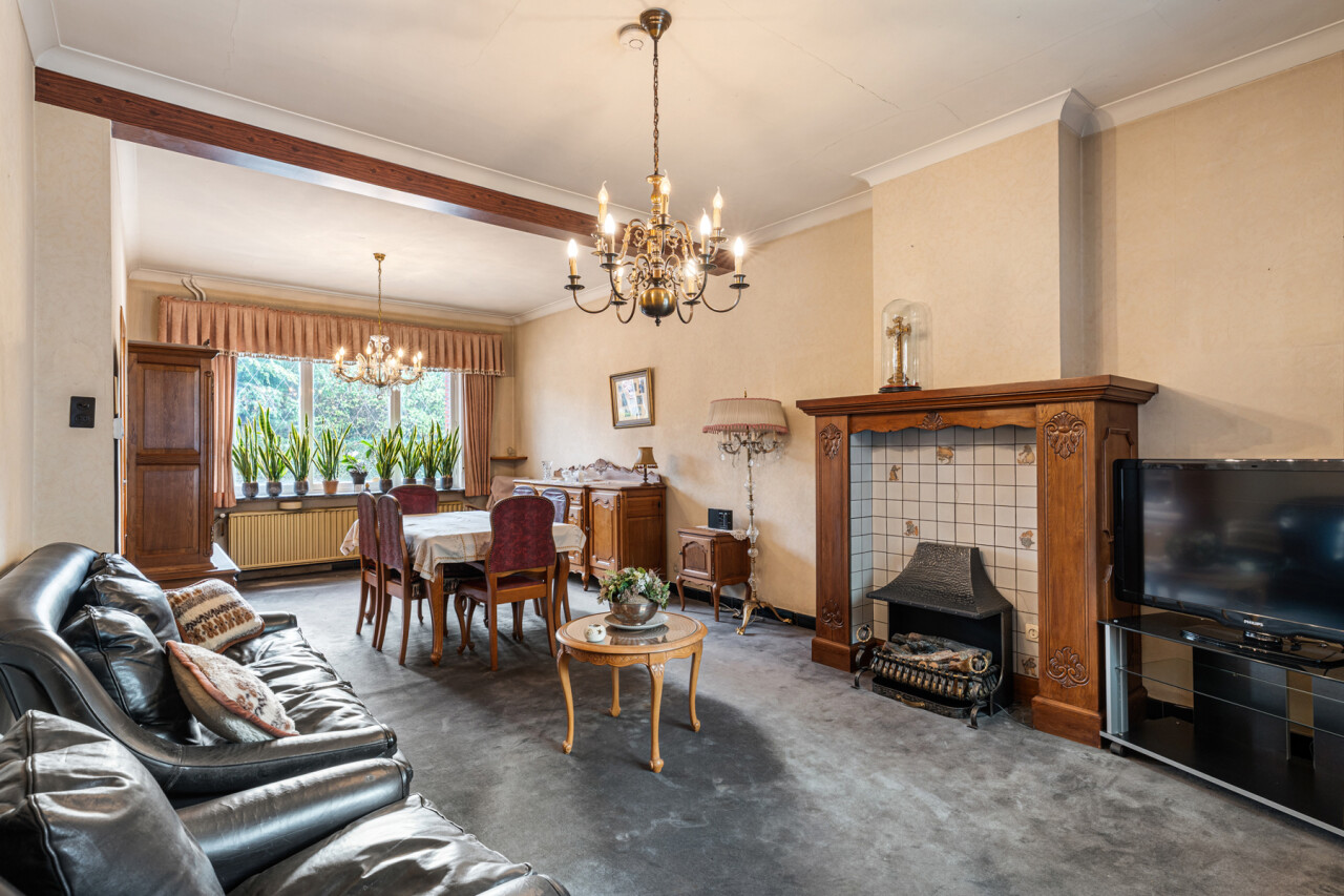De ruime woonkamer geniet van veel lichtinval en is voorzien van een klassieke schouw. De keuken beschikt over veel kastruimte, een gasvuur, koelkast, spoelbak en een dampkap. De badkamer is voorzien van een douche in bad en een lavabo. Op de eerste verdieping zijn er 3 slaapkamers . De zolder is toegankelijk via een vaste trap en kan nog verder afgewerkt worden tot extra kamers of een hobbyruimte. Verder beschikt deze woning over een verrassend ruime tuin. De garage en het extra bijgebouw bieden eveneens tal van mogelijkheden.