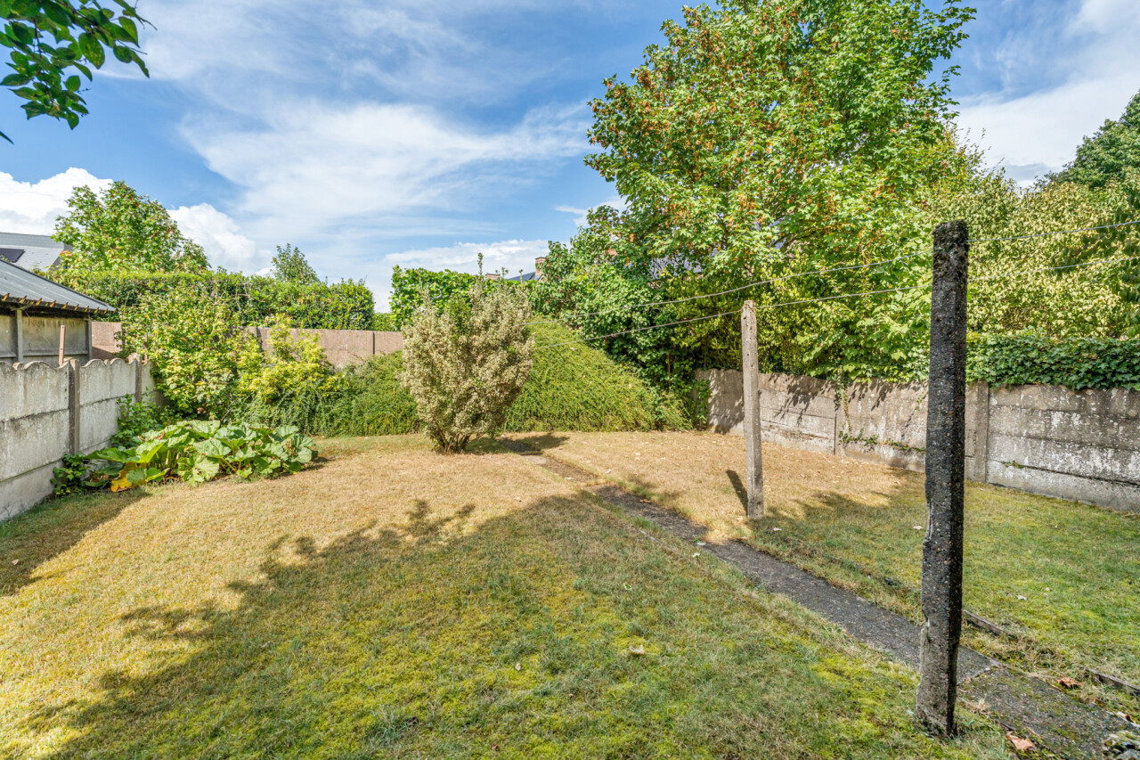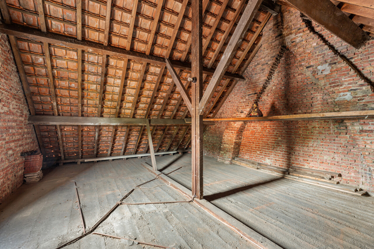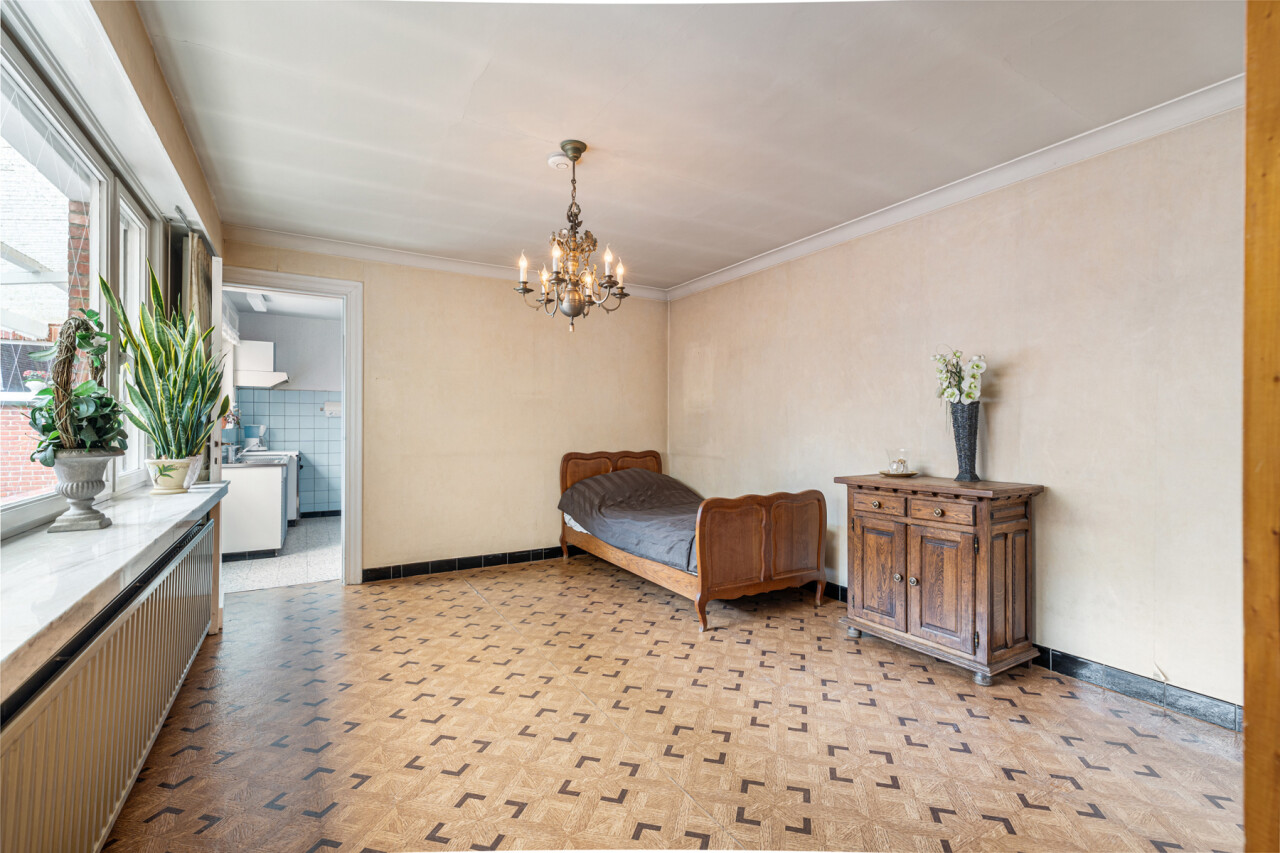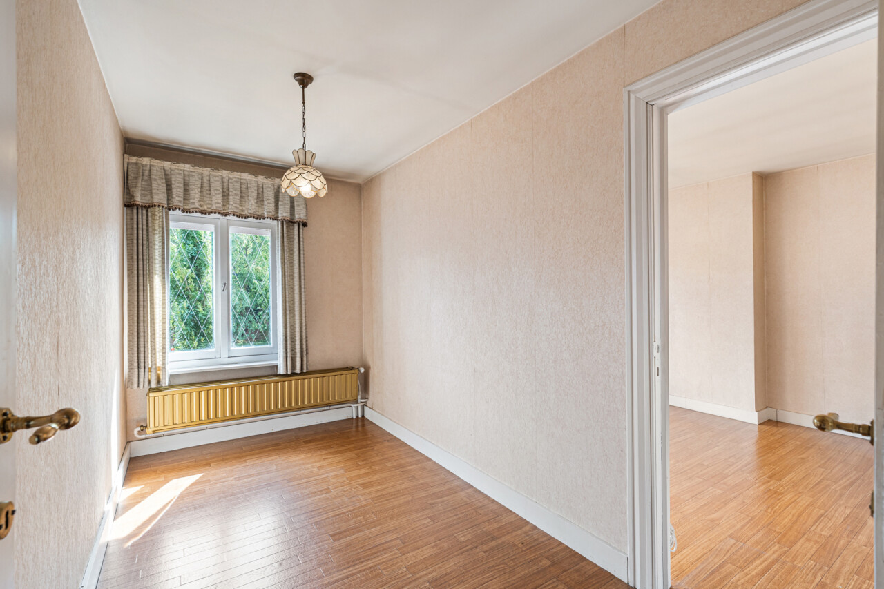 De ruime woonkamer geniet van veel lichtinval en is voorzien van een klassieke schouw. De keuken beschikt over veel kastruimte, een gasvuur, koelkast, spoelbak en een dampkap. De badkamer is voorzien van een douche in bad en een lavabo. Op de eerste verdieping zijn er 3 slaapkamers . De zolder is toegankelijk via een vaste trap en kan nog verder afgewerkt worden tot extra kamers of een hobbyruimte. Verder beschikt deze woning over een verrassend ruime tuin. De garage en het extra bijgebouw bieden eveneens tal van mogelijkheden.
