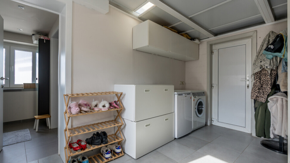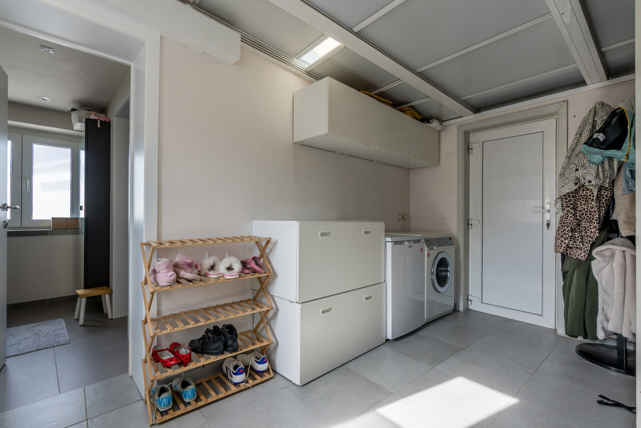 De woning is instapklaar en is op het gelijkvloers ingedeeld met een inkomhal, een lichtrijke leefruimte met aansluitend een ruime keuken, een berging, een badkamer met lavabo en douche, en een toilet. Op de verdieping zijn er 2 slaapkamers voorzien. Verder is er nog een bergkelder en tuinberging aanwezig (± 9 en 14m²).