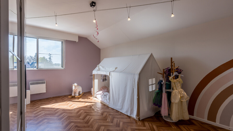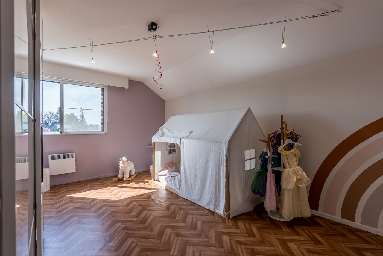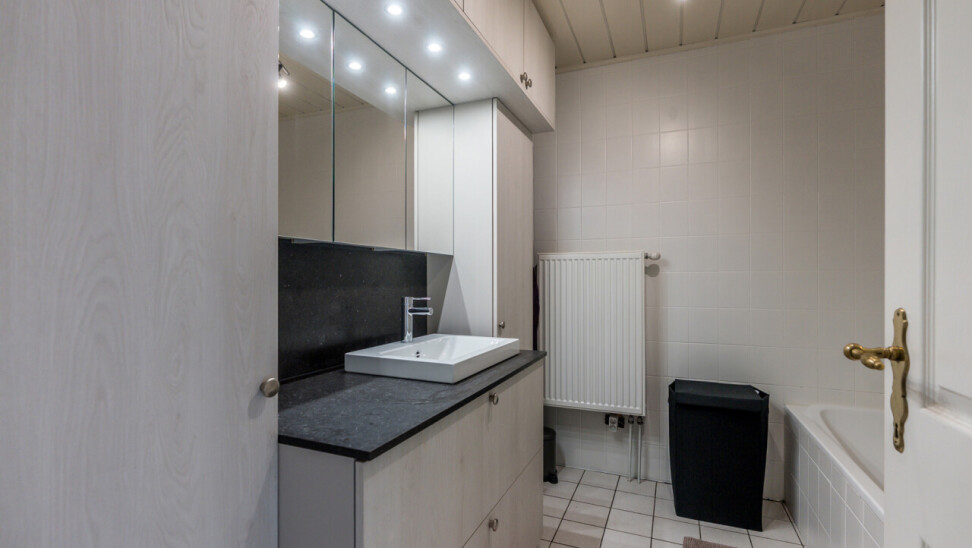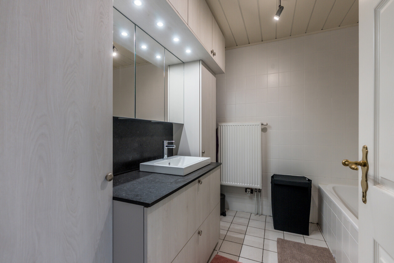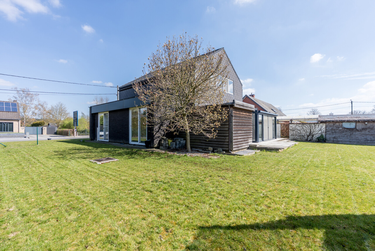 De woning beschikt over een bewoonbare oppervlakte van ± 170m² (excl. garage, kelder en zolder) en bestaat op het gelijkvloers uit een inkomhal met toilet, een ruime en lichtrijke leefruimte in L-vorm, een keuken met aansluitend bijkeuken/berging, een veranda, een badkamer met zowel een ligbad als douche en een inpandige garage. Op de verdieping hebben we 4 slaapkamers en een tweede toilet.