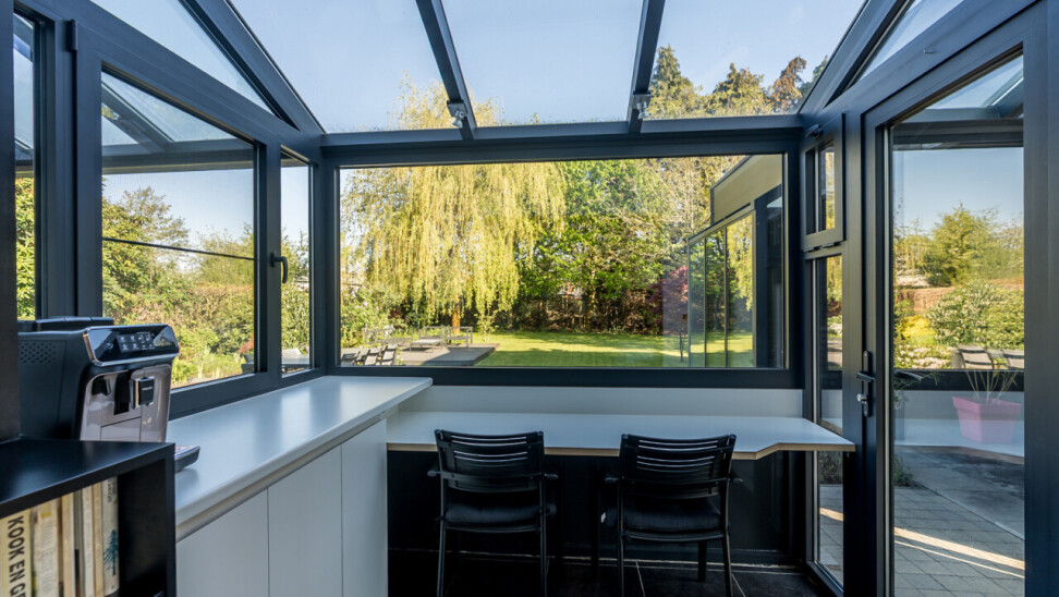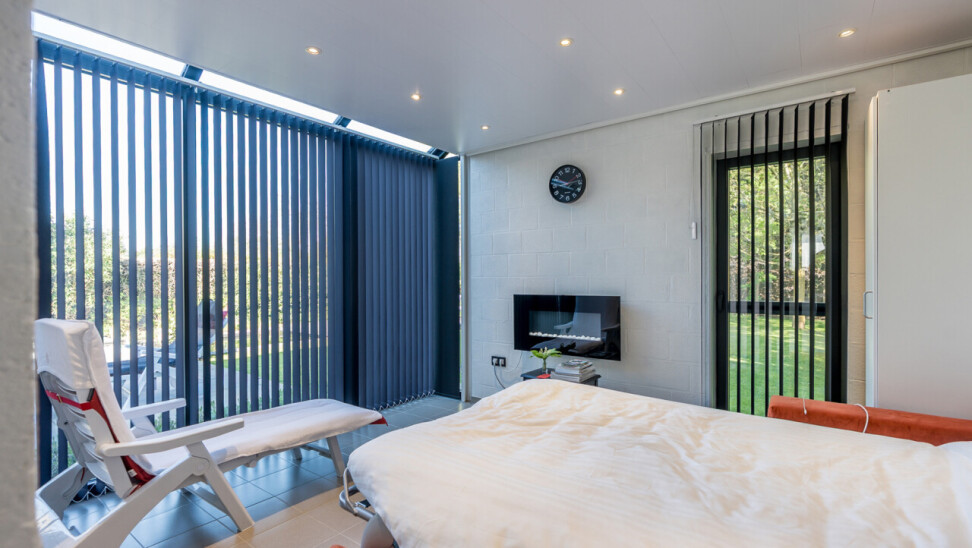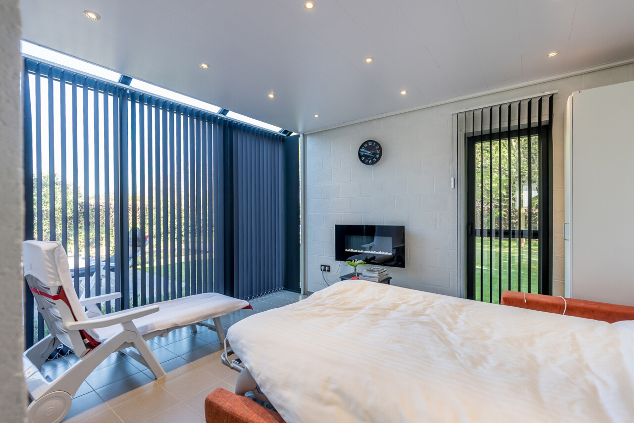Het bijgebouw is ingericht met een relaxruimte / 4e slaapkamer, een sauna, toilet en douche, een bergruimte en een fietsenberging. Momenteel wordt het bijgebouw op regelmatige basis verhuurd als airbnb.