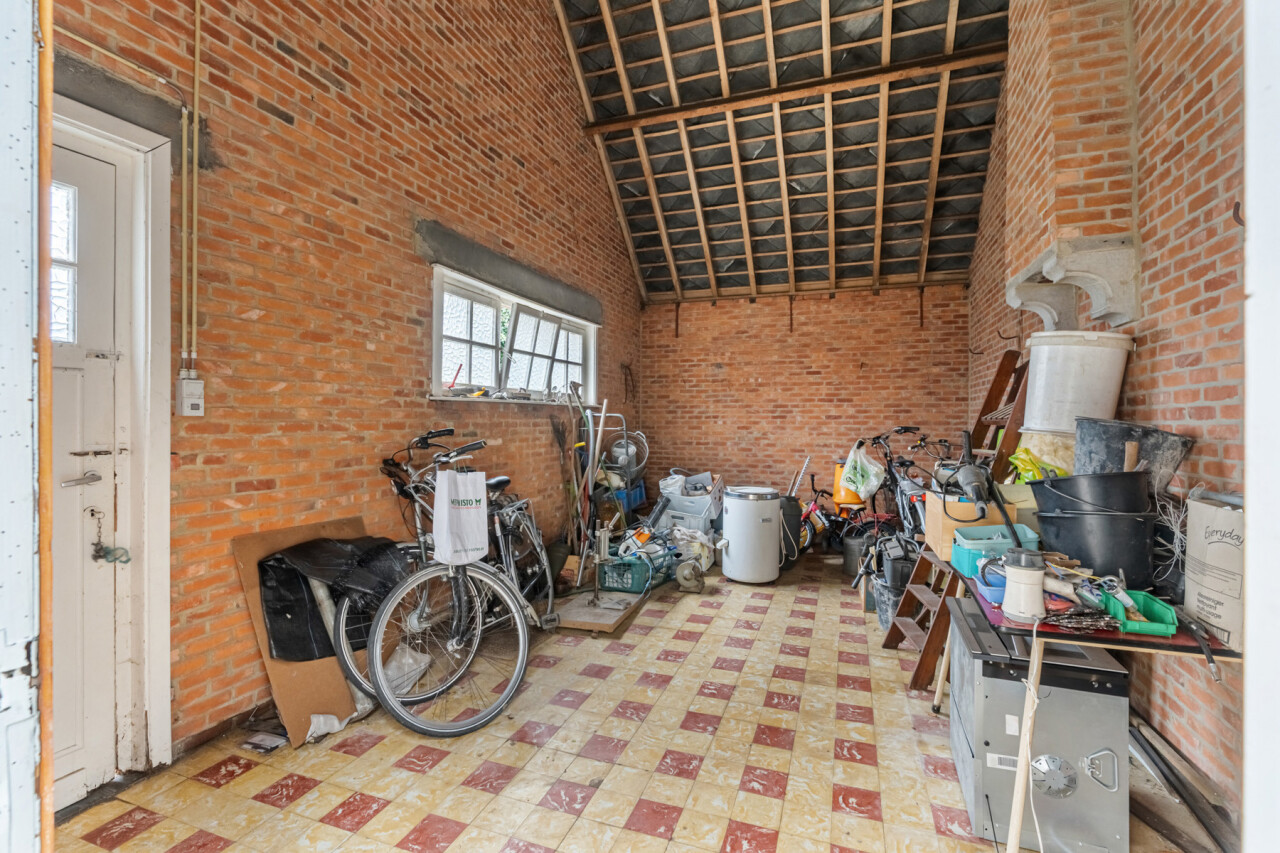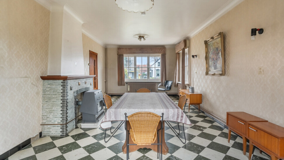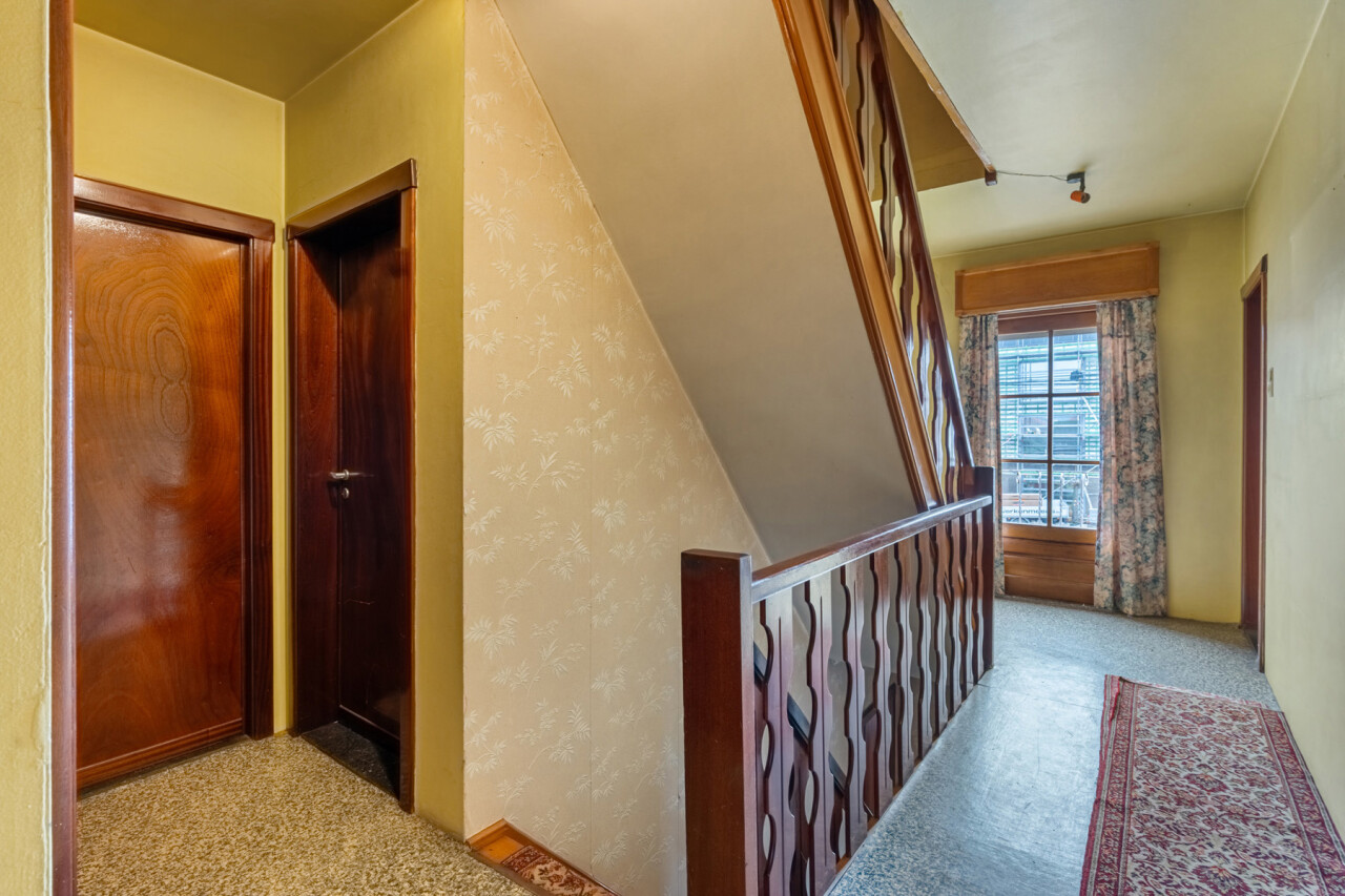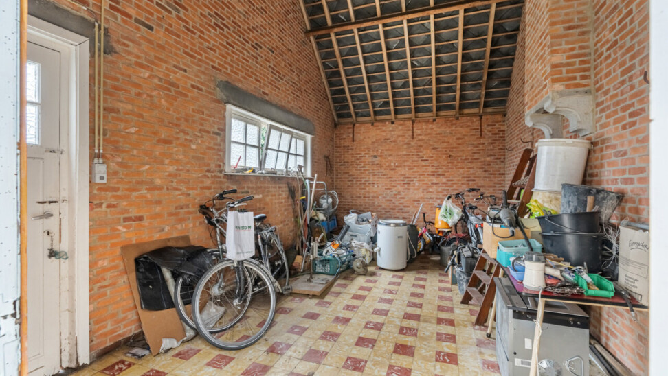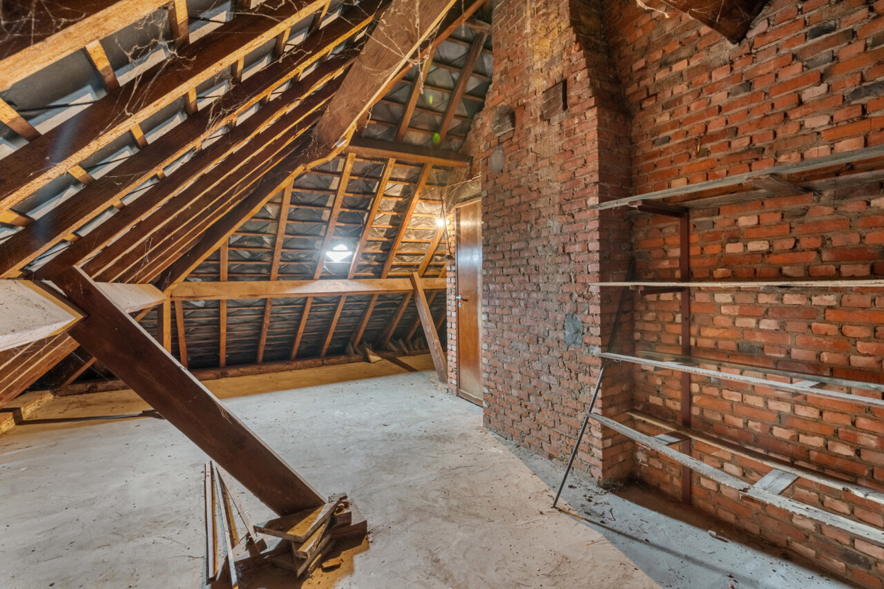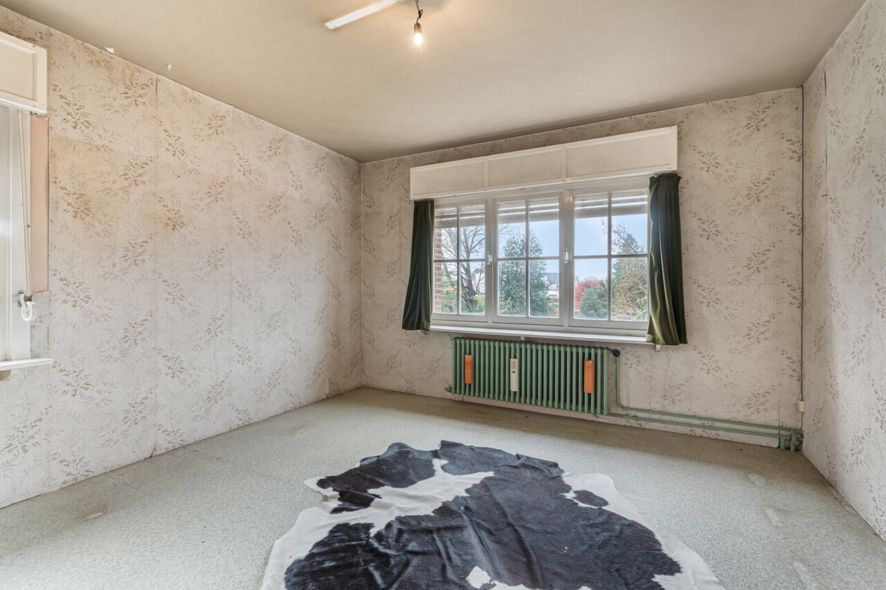 De ruime woning straalt karakter en charme uit, werd gebouwd in 1958 en werd doorheen de jaren goed onderhouden. Momenteel bevindt ze zich in een te renoveren staat. Via de inkomhal betreden we de woning, aan de rechterzijde is er een bureauruimte van 16 m². Deze kan perfect dienst doen als thuiskantoor, hobbyruimte of als slaapkamer. Aan de linkerzijde de ruime woonkamer, deze geniet van veel natuurlijke lichtinval dankzij de grote ramen voor- en achteraan. Aangrenzend is er de keuken, ook deze geniet van zicht op de tuin. Verder is er gelijkvloers een ruime berging/wasplaats en de inpandige garage. De bovenverdieping omvat 4 slaapkamers (16, 16,16 en 11 m²) en de badkamer. Deze is voorzien van ligbad met douche in bad, lavabomeubel en een toilet. De zolder is bereikbaar via een vaste trap, en biedt de mogelijkheid om in te trichten naar wens Ook is er een bergkelder aanwezig. De woning is gelegen op een perceel van 886 m², ideaal georiënteerd naar het westen. KORTOM een woning met veel potentieel op een goede locatie!