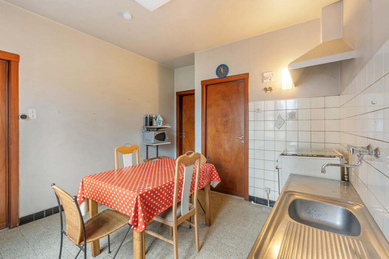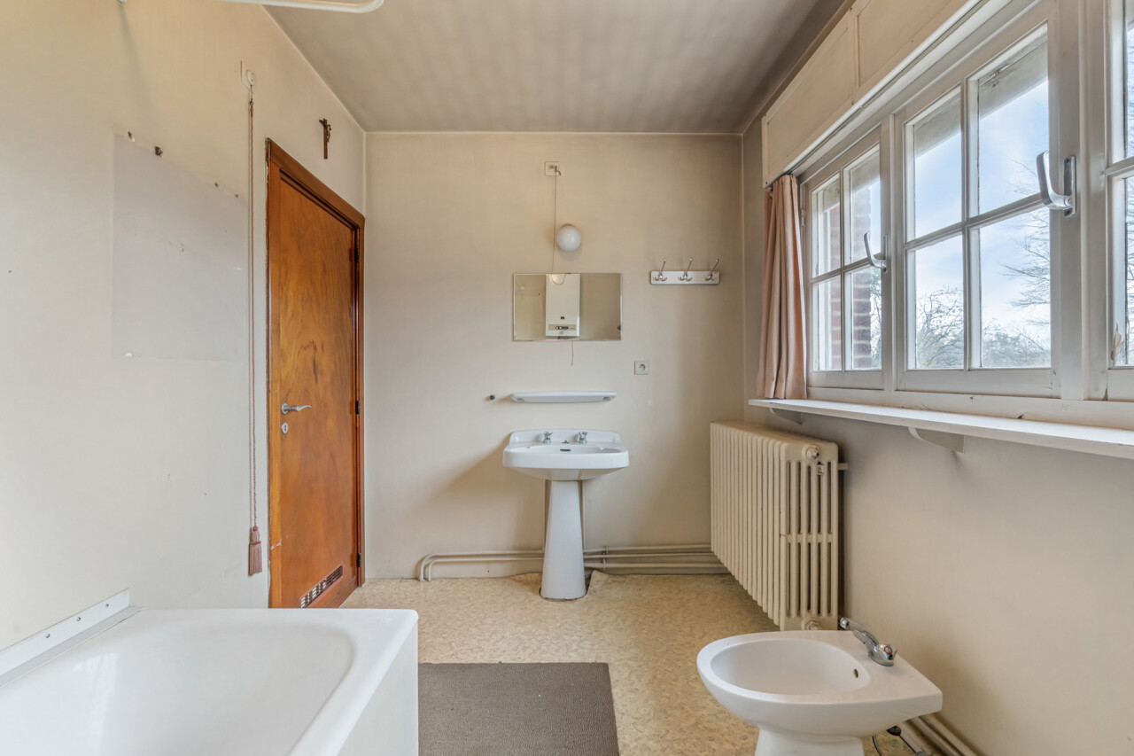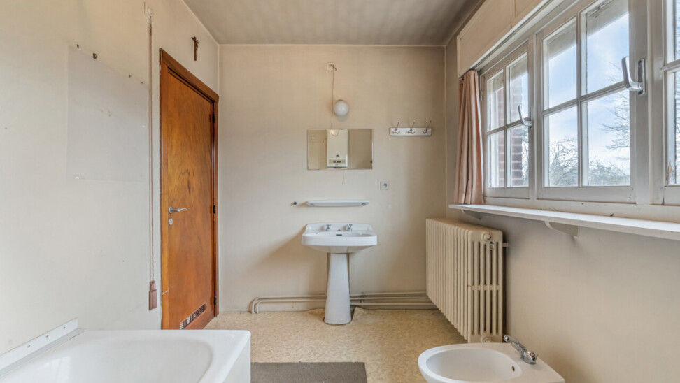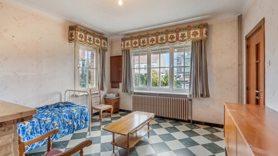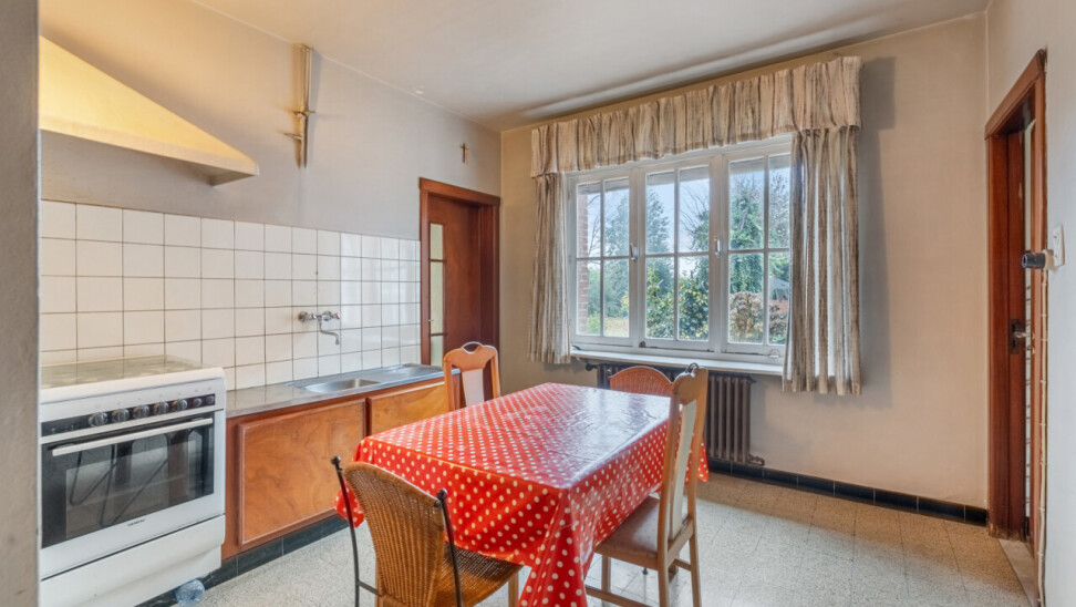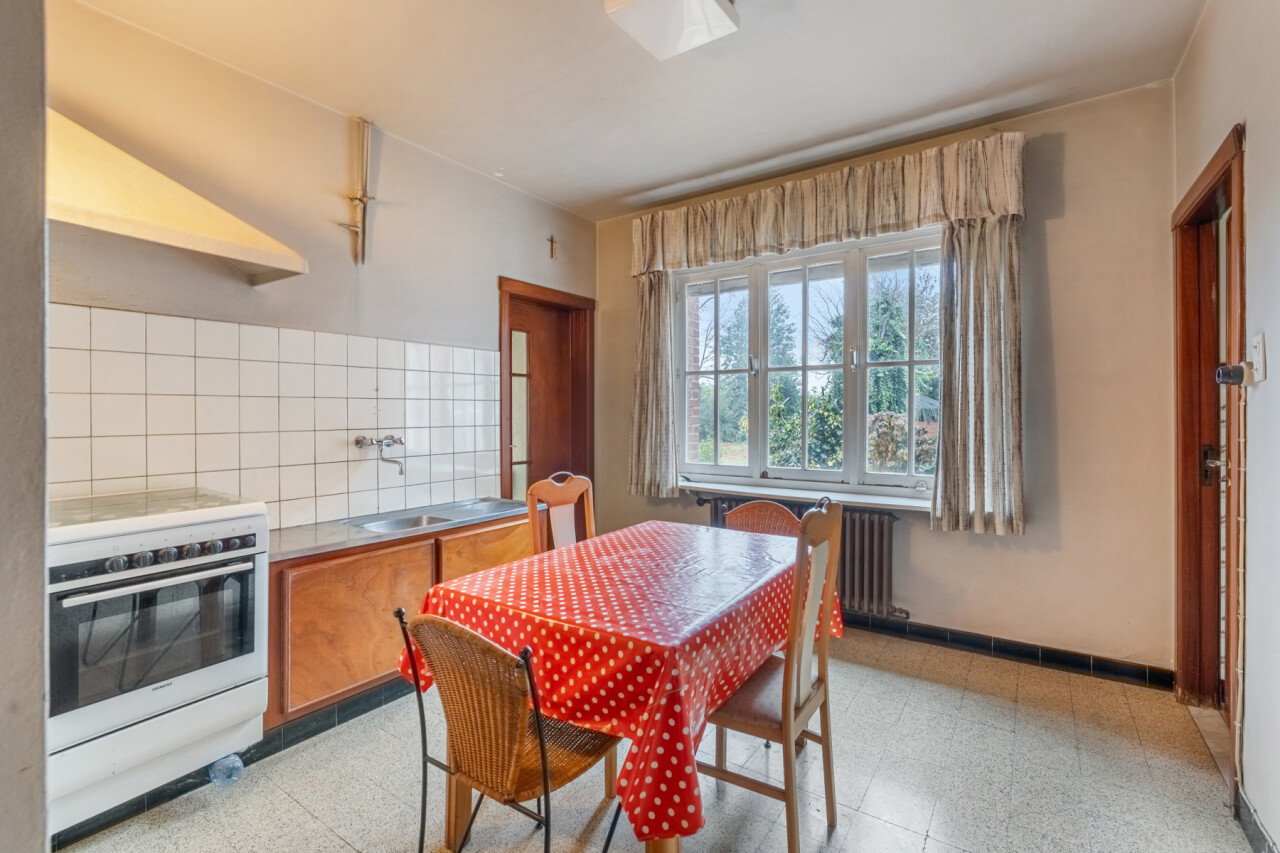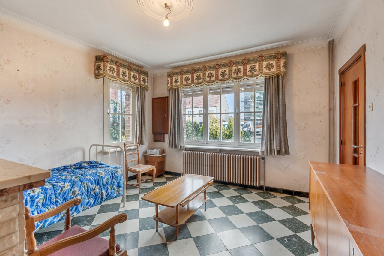 De ruime woning straalt karakter en charme uit, werd gebouwd in 1958 en werd doorheen de jaren goed onderhouden. Momenteel bevindt ze zich in een te renoveren staat. Via de inkomhal betreden we de woning, aan de rechterzijde is er een bureauruimte van 16 m². Deze kan perfect dienst doen als thuiskantoor, hobbyruimte of als slaapkamer. Aan de linkerzijde de ruime woonkamer, deze geniet van veel natuurlijke lichtinval dankzij de grote ramen voor- en achteraan. Aangrenzend is er de keuken, ook deze geniet van zicht op de tuin. Verder is er gelijkvloers een ruime berging/wasplaats en de inpandige garage. De bovenverdieping omvat 4 slaapkamers (16, 16,16 en 11 m²) en de badkamer. Deze is voorzien van ligbad met douche in bad, lavabomeubel en een toilet. De zolder is bereikbaar via een vaste trap, en biedt de mogelijkheid om in te trichten naar wens Ook is er een bergkelder aanwezig. De woning is gelegen op een perceel van 886 m², ideaal georiënteerd naar het westen. KORTOM een woning met veel potentieel op een goede locatie!