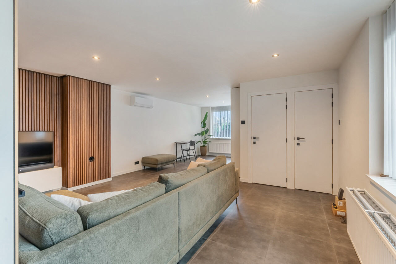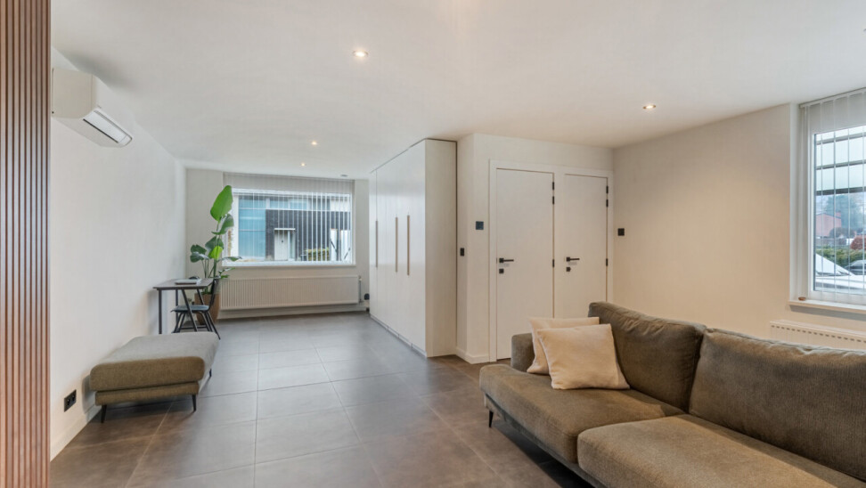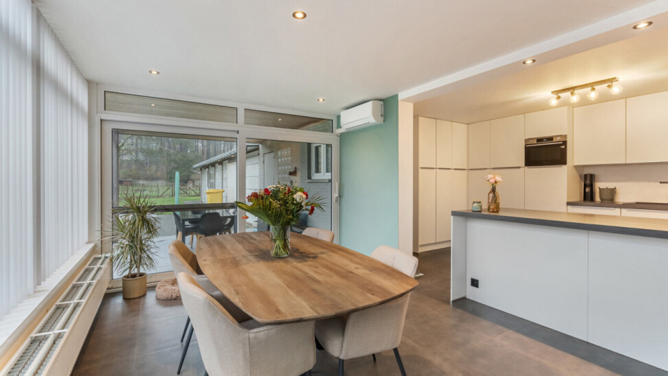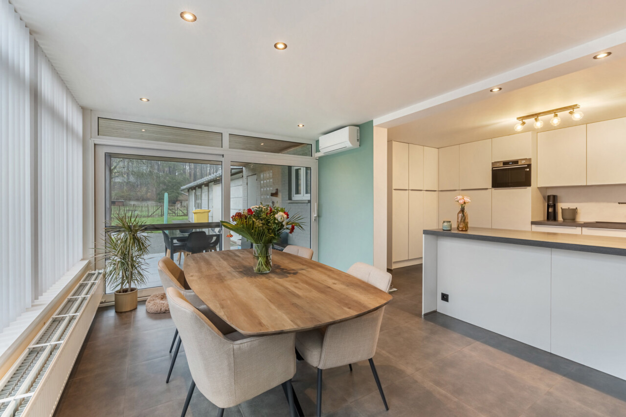 De woning werd in 2014 volledig gerenoveerd. Volgende werken werden reeds uitgevoerd: vloeren, dak, ramen, stukwerk, centrale verwarming, elektriciteit, riolering,… alles werd vernieuwd of vervangen. Ook de gevels werden grondig gereinigd en opnieuw ingevoegd. Dankzij de grote raampartijen baadt de leefruimte in natuurlijk licht en via het schuifraam achteraan krijgt u directe toegang tot het overdekte terras. De keuken en badkamer werden eveneens vernieuwd en zijn praktisch ingericht. Naast de keuken is er nog een wasplaats voorzien.