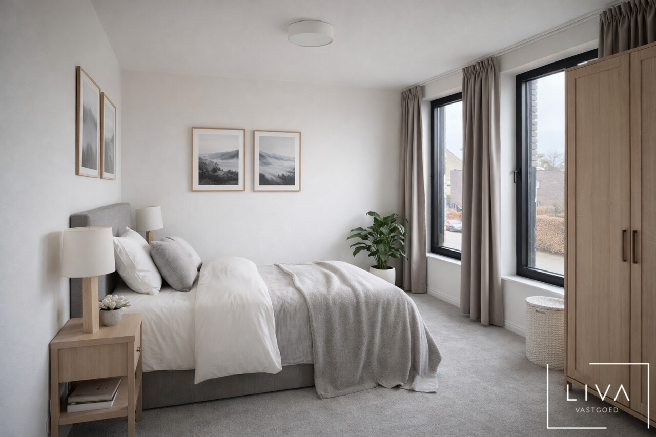Deze woning is voorzien van een kwaliteitsvolle opbouw met vloerverwarming en warmtepomp, zonnepanelen, aluminium buitenschrijnwerk en een regenwaterput van 7.500 liter. E-peil:10 De beelden zijn visualisaties.