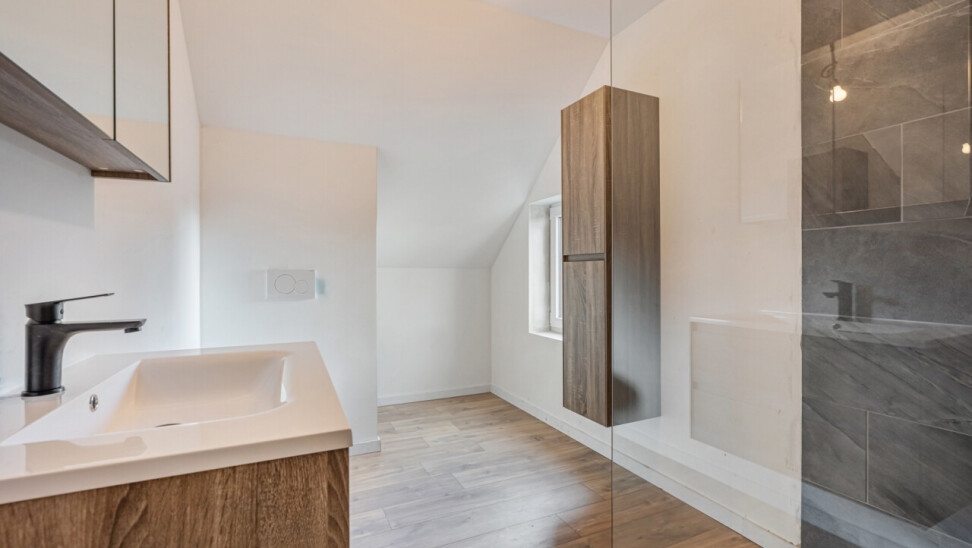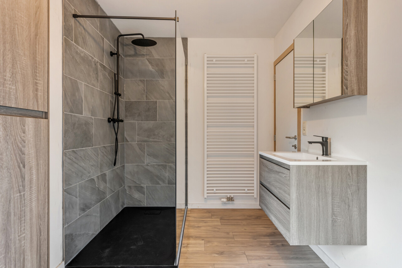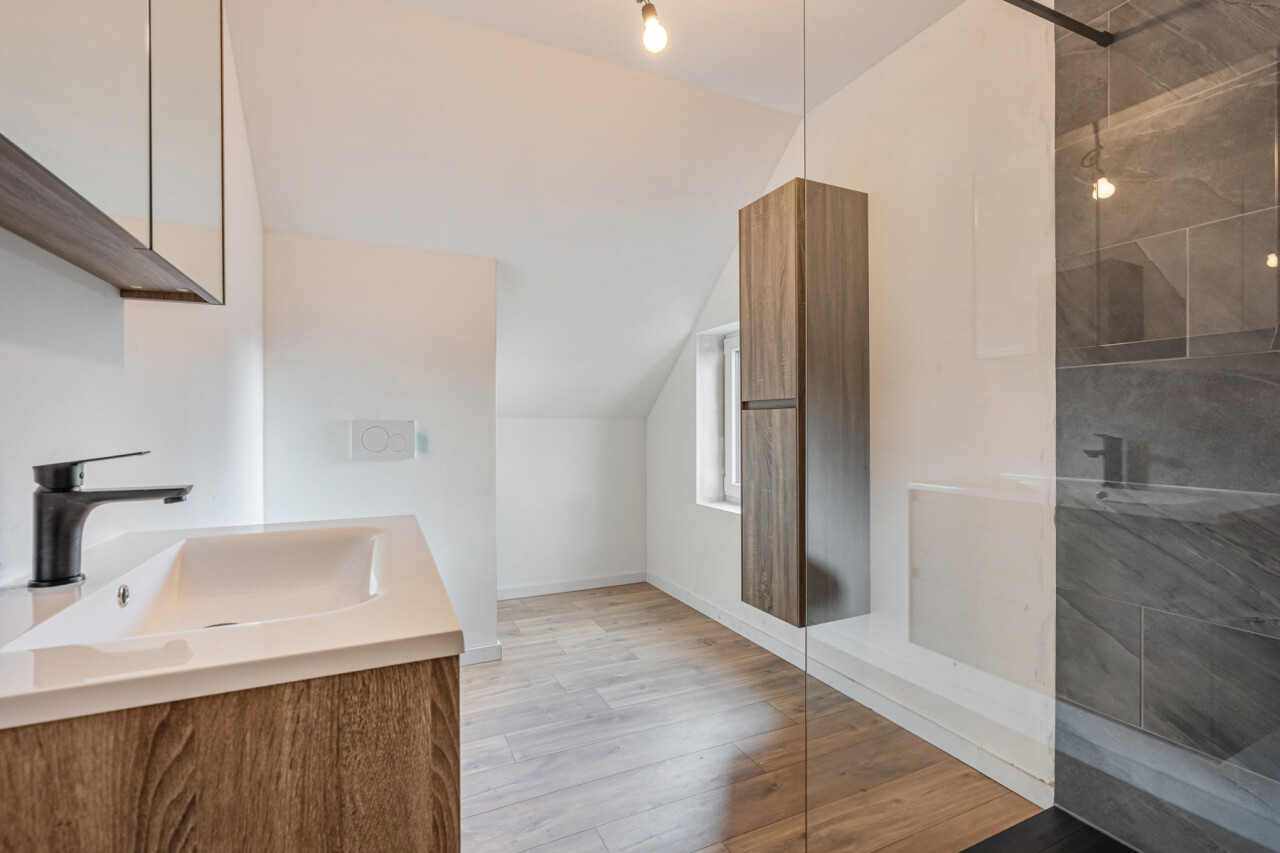 De keuken is voorzien van alle nodige toestellen: een vaatwasser, spoelbak, inductiekookplaat, dampkap, koelkast met vriesvak en ruim voldoende kastruimte. Op de eerste verdieping bevinden zich drie slaapkamers en een badkamer uitgerust met een lavabo, een tweede toilet en een comfortabele inloopdouche. Buiten geniet u van een gezellig terras met een onderhoudsvriendelijke tuin, een aangelegde parkeerplaats en een handige fietsberging.