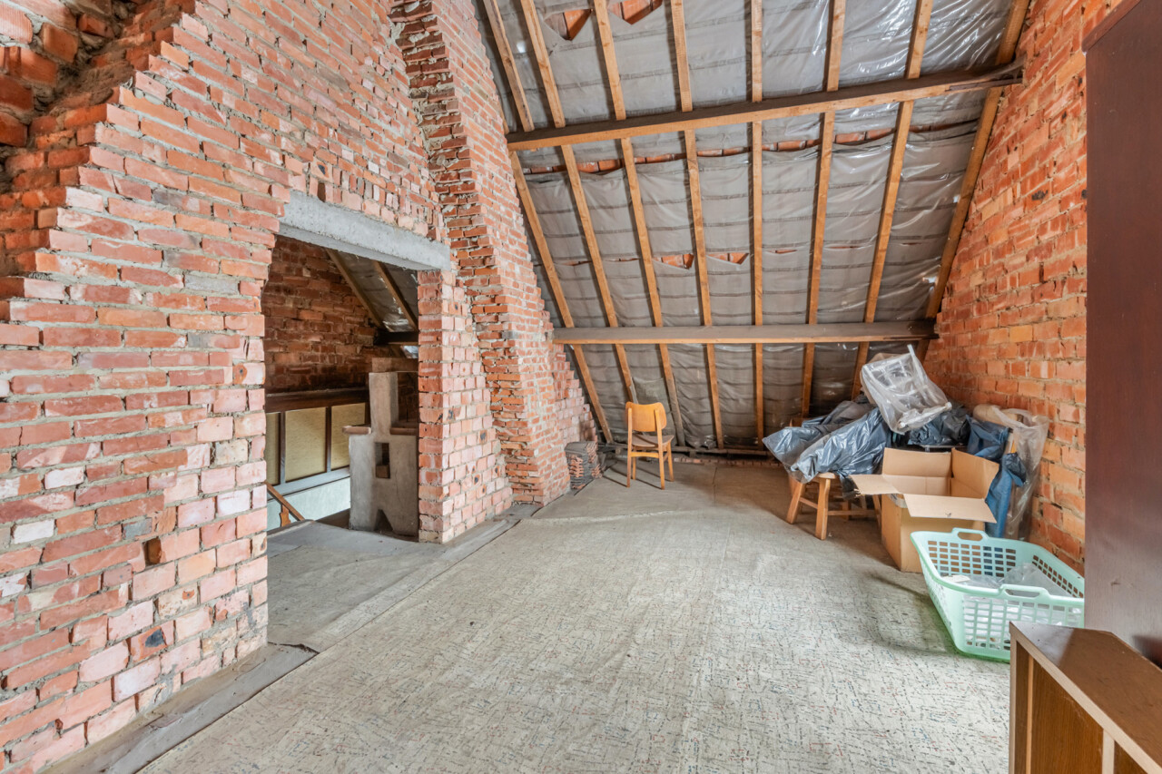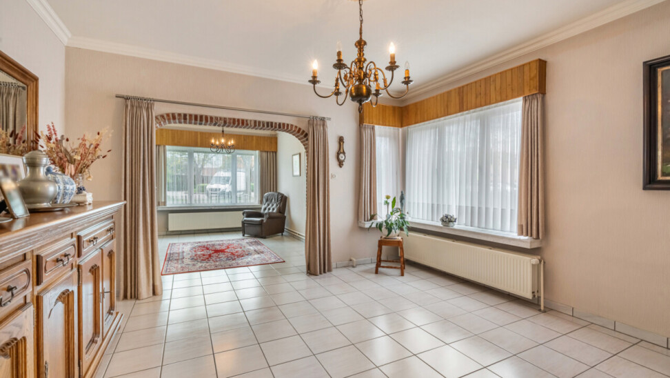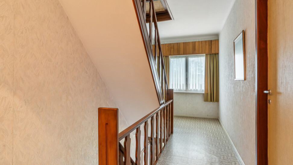 De woning werd gebouwd in 1960, doorheen de jaren zeer goed onderhouden. Via de inkomhal betreden we de aangename woonkamer (30 m²), deze geniet van bijzonder veel natuurlijke lichtinval. Aansluitend is er de eetkamer en de keuken. De leefruimte heeft een totale oppervlakte van 52 m². Verder is er gelijkvloers de badkamer, wasplaats en een grote berging. De bovenverdieping omvat 2 ruime slaapkamers van 13 m² en een derde slaapkamer van 6 m² dewelke perfect kan omgebouwd worden tot badkamer. Zeer praktisch is de ruime zolder, bereikbaar via een vaste trap en kan ingericht worden tot zeer ruime slaapkamer/hobbykamer.