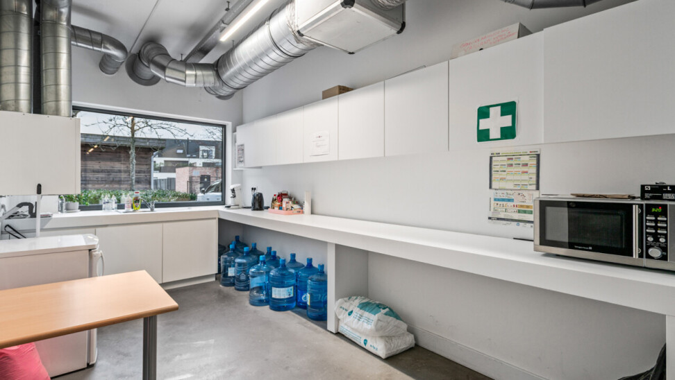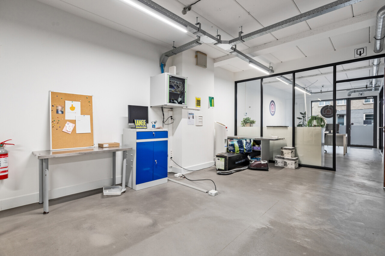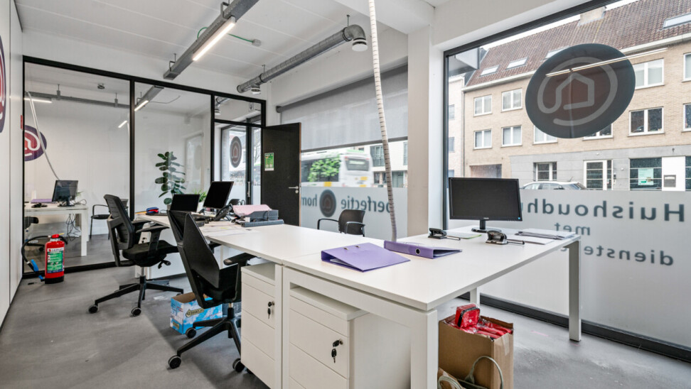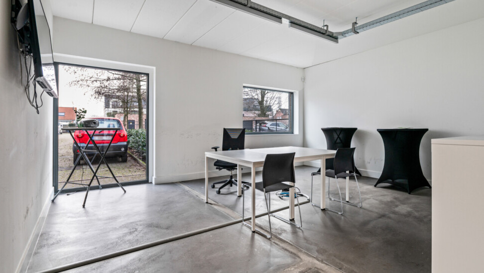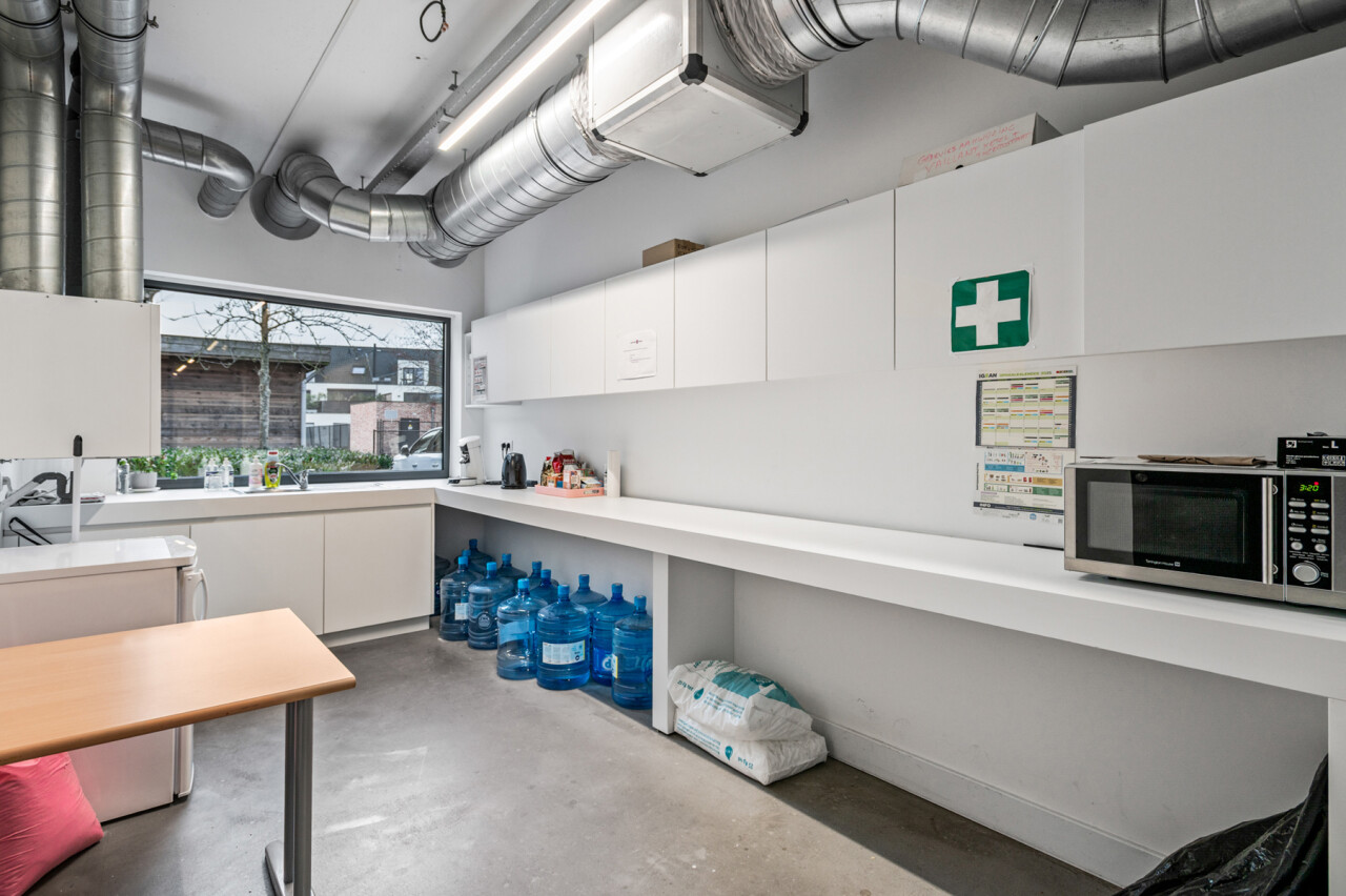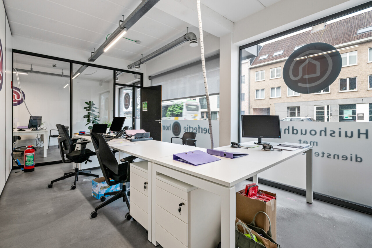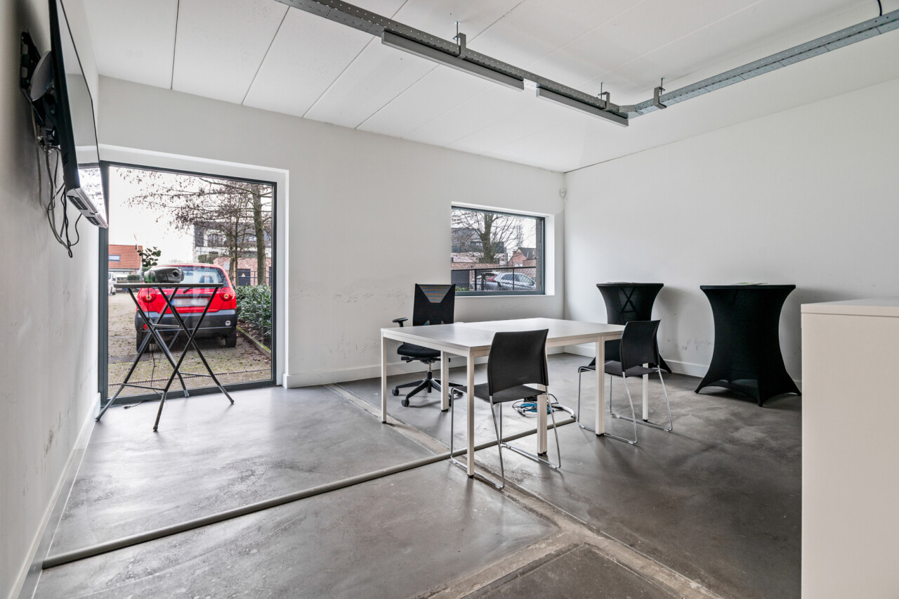 Het pand werd gebouwd in 2012, en doorheen de jaren goed onderhouden. Het gaat om een zeer ruim en multifunctioneel gelijkvloers van 265 m². Momenteel opgedeeld in verschillende bureauruimtes, een onthaal en een keuken. Maar dit pand biedt vele mogelijkheden. Zeer praktisch is de privatieve kelder, bereikbaar via het handelspand. Een de parkeerplaatsen die bereikbaar zijn langs achter.